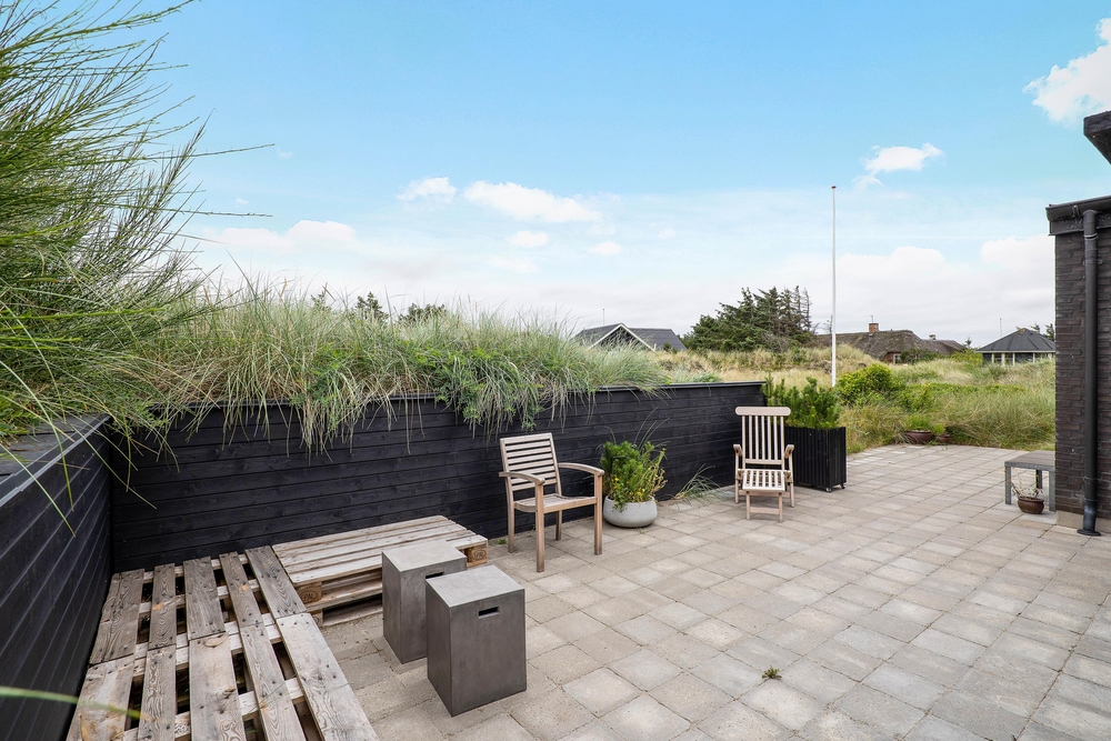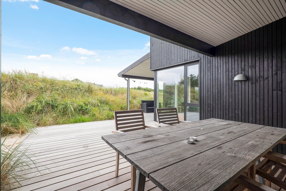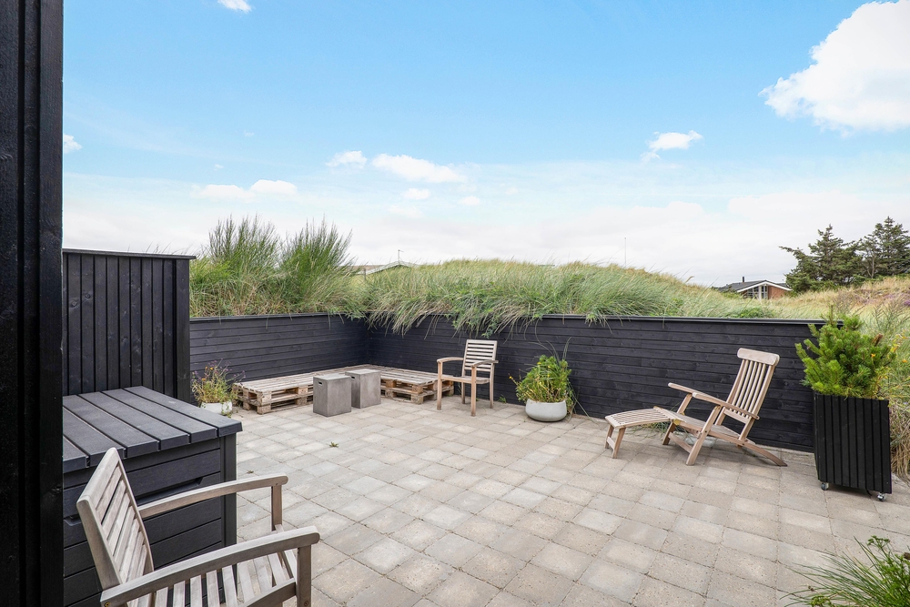 Um das Haus herum befinden sich geschützte Ecken, so dass ihr die Sonne und die frische Meeresluft bei fast jeder Witterung genießen könnt. Es gibt sowohl offene, abgeschirmte als auch überdachte Bereiche der Terrasse. Selbstverständlich stehen auch Gartenmöbel, Sonnenliegen und Grill für euch bereit ? so dass ihr so viel Zeit wie möglich Draussen verbringen könnt. Von April-November steht euch eine Außendusche zur Verfügung.