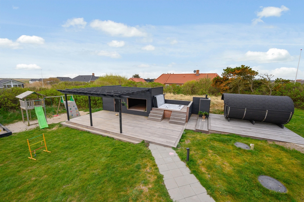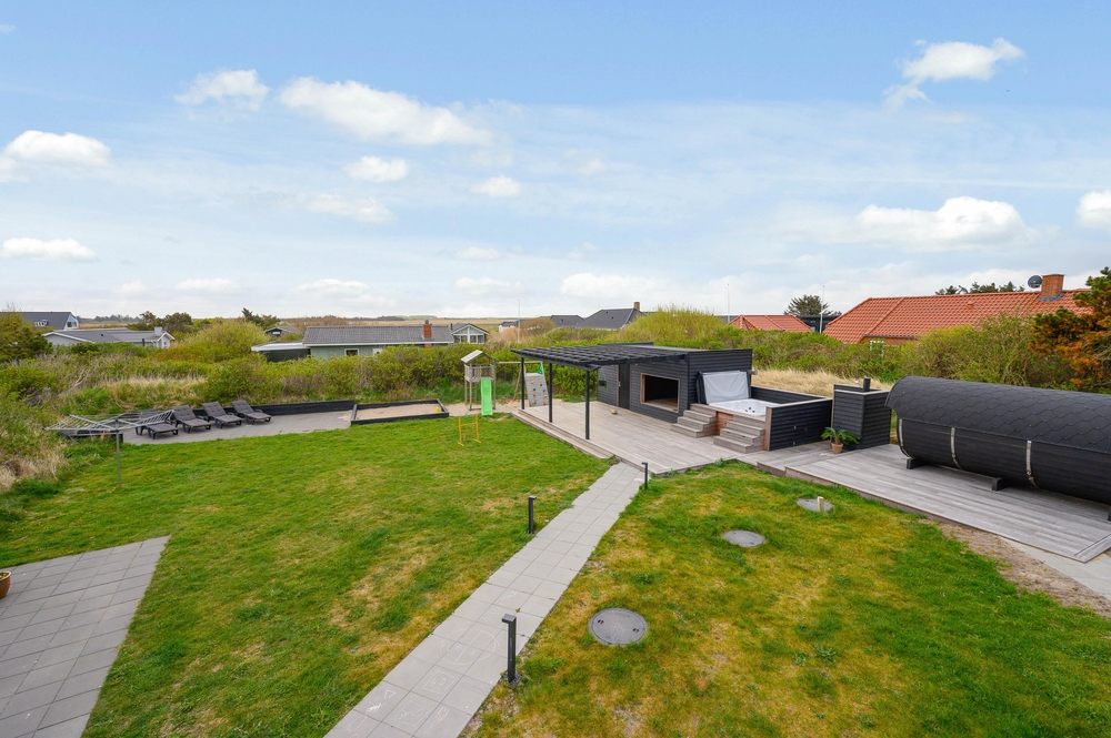Das dazugehörige grosse Grundstück bietet viel Platz für Spiel und Spass. Sucht Euch ein schönes Plätzchen zum Sonnenbaden, während die jüngeren Gäste sich auf den Schaukeln oder im grossen Sandkasten amüsieren. Auch ein gemütlicher Grillabend in grosser Runde ist ein schönes sommerliches Erlebnis für die ganze Familie. Nach einem aufregenden und erlebnisreichen Tag, könnt ihr euch in dem Außenwhirlpool entspannen und die Sommernächte genießen.