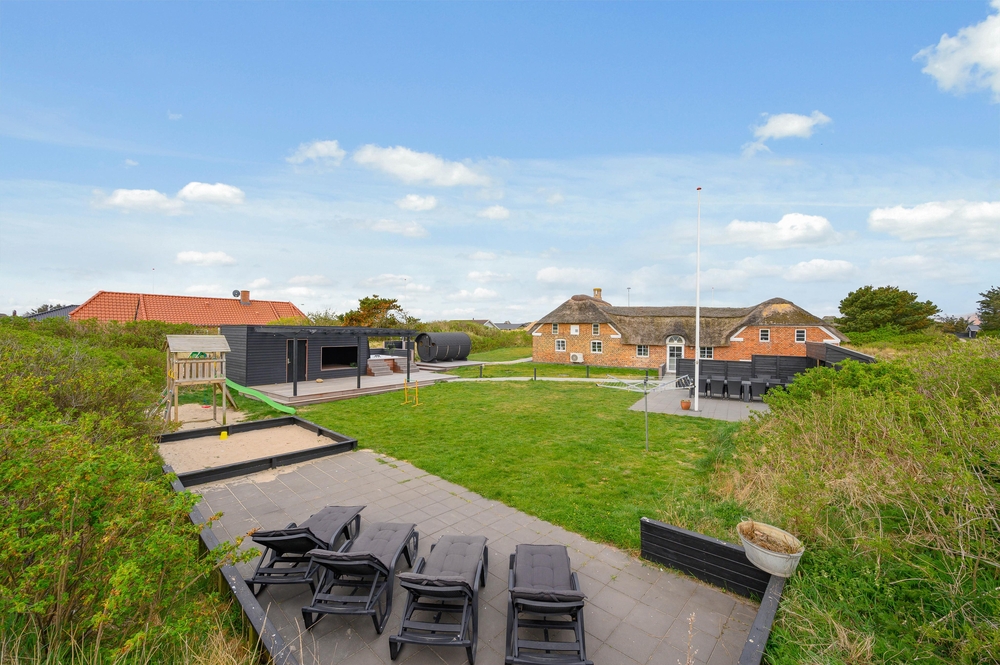 Seid Ihr auf der Suche nach einem Feriendomizil für Eure nächsten Familienferien am Meer? Dieses tolle Reetdachhaus bietet Platz für bis zu 14 Personen, eignet sich also perfekt für spannende Mehrgenerationsferien oder für befreundete Famililien mit gemeinsamen Ferienplänen. Das Ferienhaus hat im Jahr 2019 eine komplette Renovierung durchlaufen und präsentiert sich jetzt in einem durchgehend modernen Einrichtungsstil. Sowohl der Strand, als auch das Centrum des lebhaften Ferienortes Søndervig sind bequem zu Fuss zu erreichen.