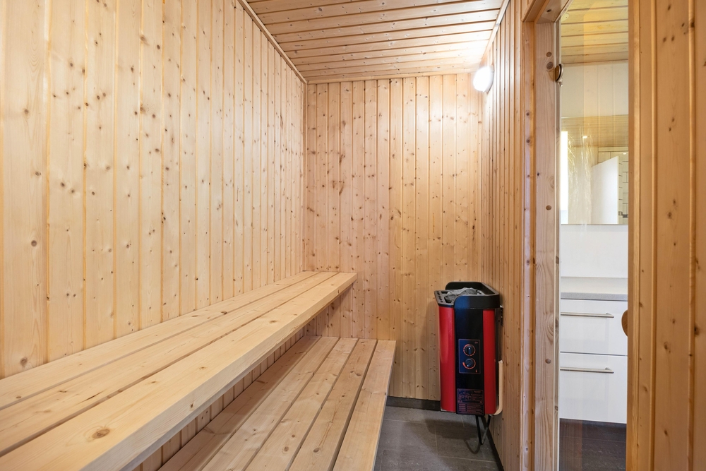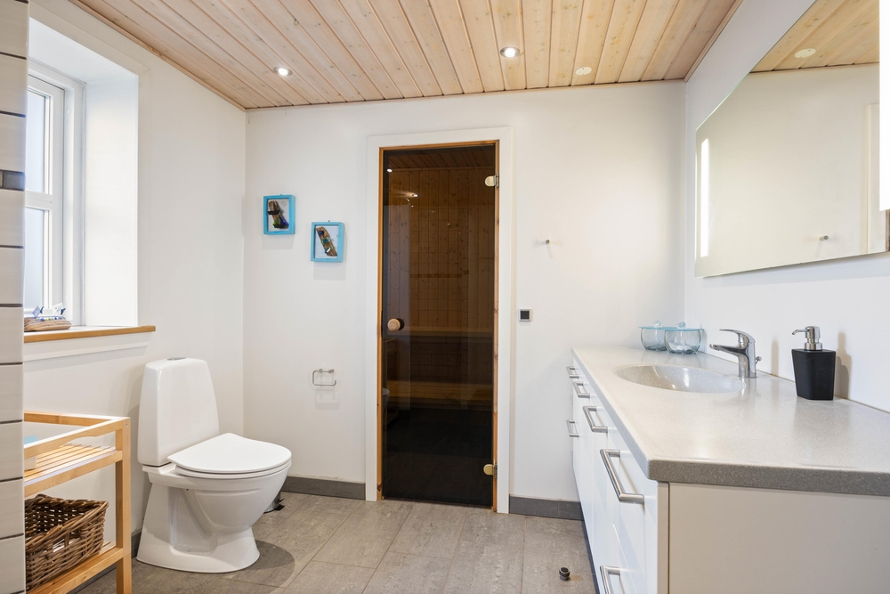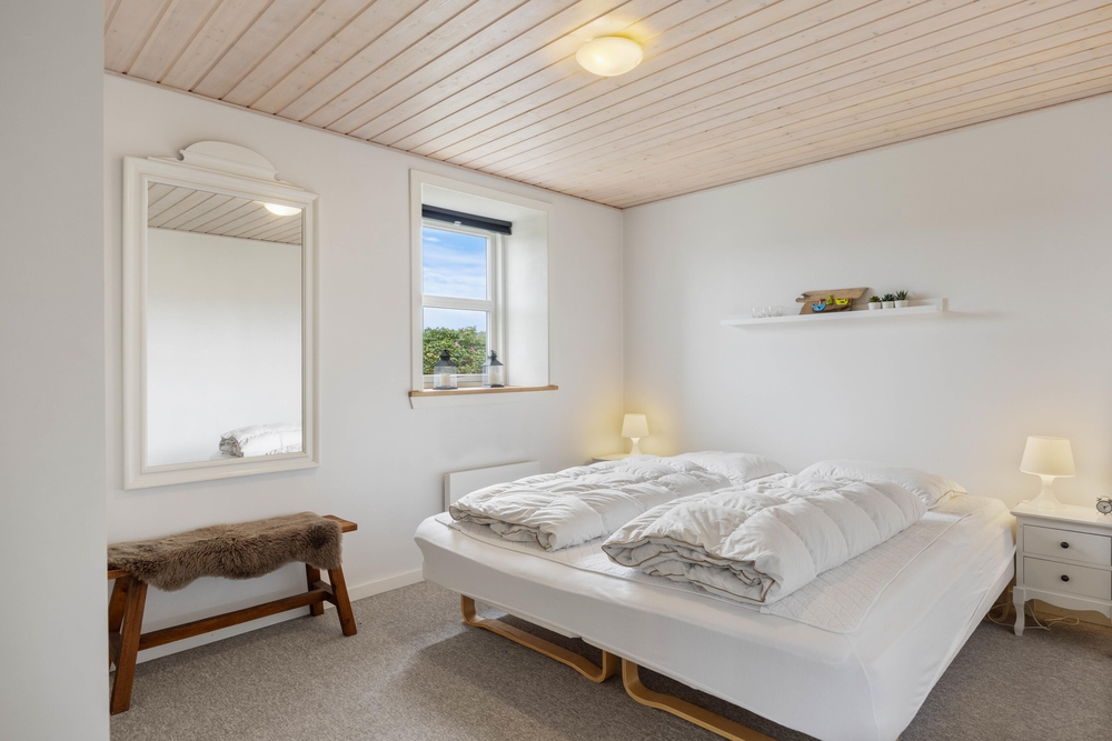 Das Ferienhaus bietet Platz für 6 Personen in 3 Schlafzimmern, die jeweils mit einem Doppelbett ausgestattet sind. Hier könnt ihr nach einem langen Tag eure Batterien wieder aufladen. Außerdem gibt es ein schönes und geräumiges Badezimmer mit Zugang zur hauseigenen Sauna, die besonders an kühleren Tagen zu Entspannung, Wärme und Wohlbefinden für Körper und Seele einlädt.