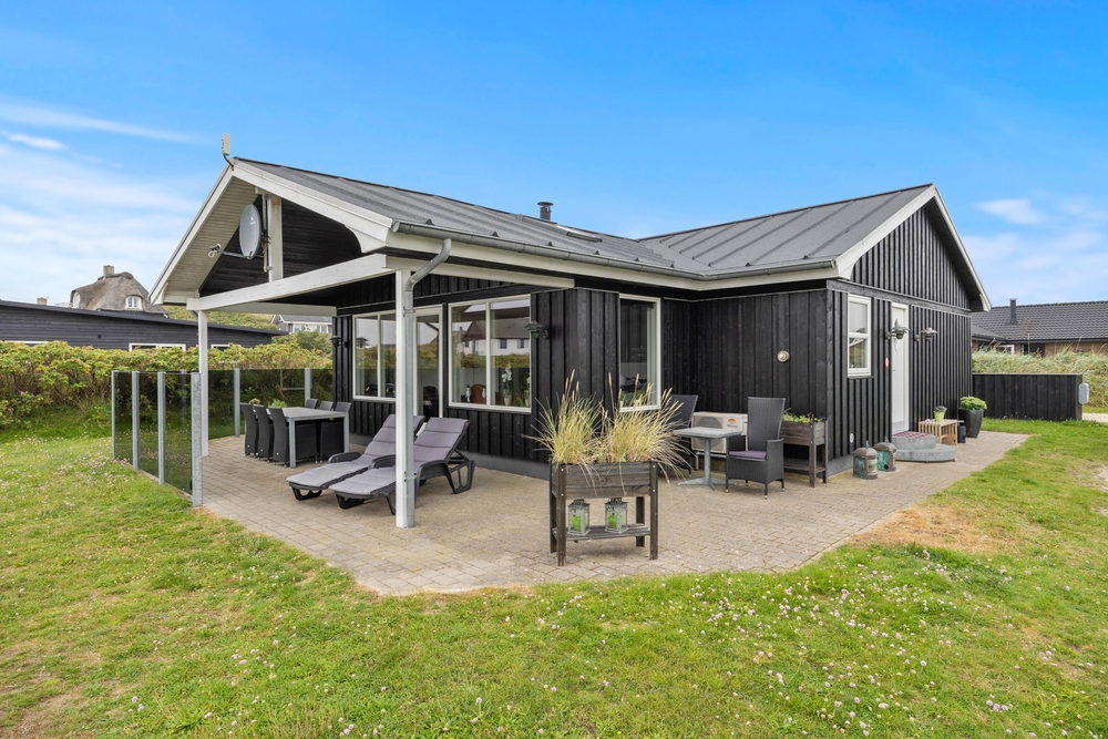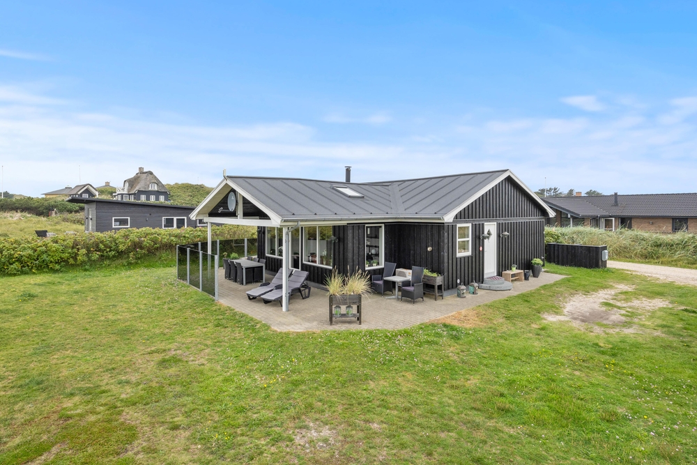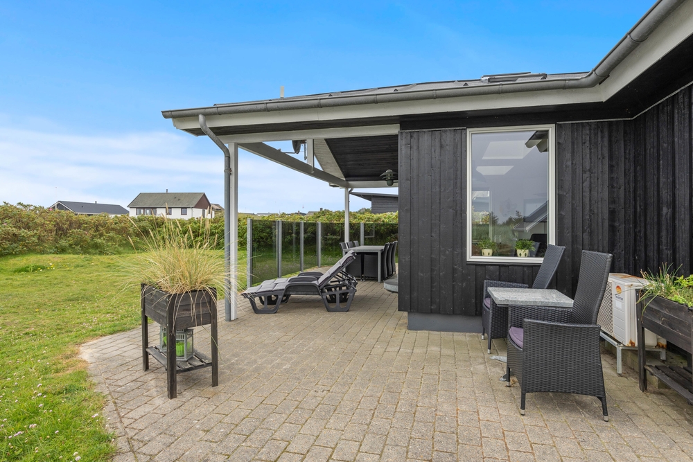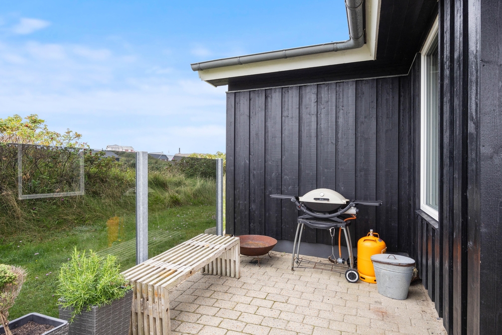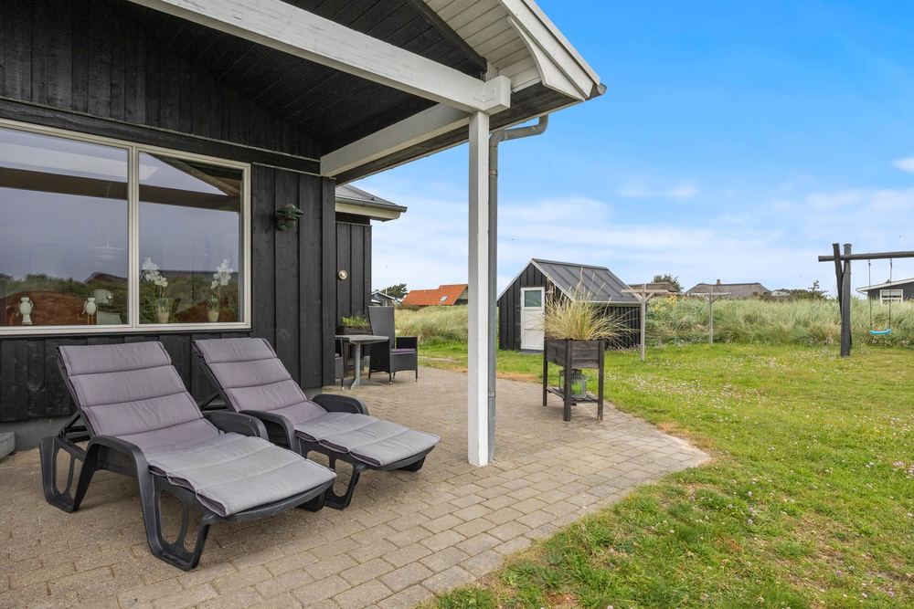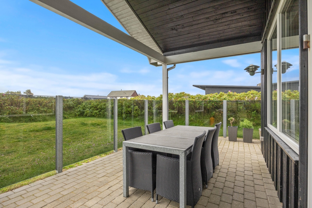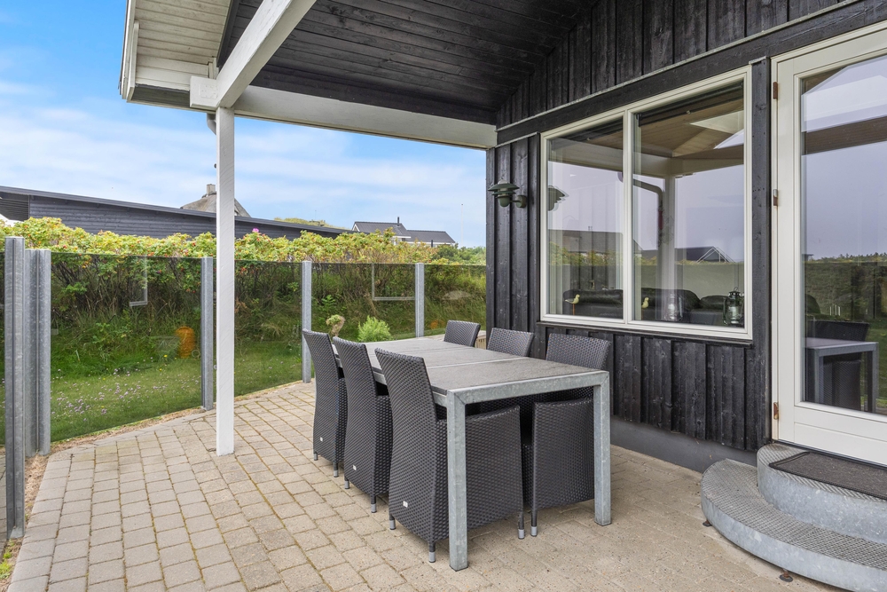 Vor dem Ferienhaus Nordsøvej 94 findet ihr eine teilweise überdachte Südterrasse, auf der ihr euch auf den Gartenmöbeln und Liegestühlen des Ferienhauses zurücklehnen und die Umgebung und die frische Seeluft genießen könnt, während der Grill für ein leckeres Abendessen sorgt.