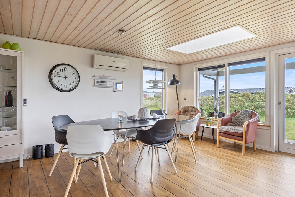 Wenn ihr auf der Suche nach einem schönen Ferienhaus seid, das eine helle und moderne Atmosphäre ausstrahlt, könnte das Ferienhaus im Nordsøvej 94 eine gute Wahl für euch sein. Das Ferienhaus in Søndervig liegt auf einem schönen Naturgrundstück, auf dem euer Hund sich garantiert gerne austobt und all seine Energie verbrennt. Das Ferienhaus bietet euch Platz für bis zu 6 Personen, was ideal für Familien ist, die in der Nähe von Søndervig Urlaub machen möchten.