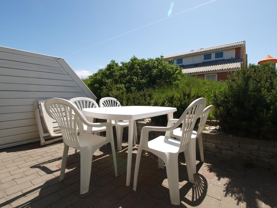 Direkt vom Wohnbereich gelangt ihr auf die nach südwesten gerichtete Terrasse. Diese ist mit Gartenmöbeln ausgestattet und links und rechts mit einem Sichtschutz versehen, so dass ihr ungestört die Sonne genießen könnt. Dies könnt ihr natürlich auch am traumhaften Nordseestrand in nur 100m Entfernung.