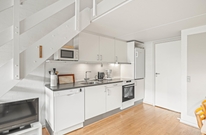 Die offene Küche ist mit einer Kühl-Gefrierkombi, einer Mikrowelle und einem Geschirrspüler ausgestattet, der für euch den Abwasch übernimmt, während ihr gemeinsam Pläne für die kommenden Tage schmiedet.