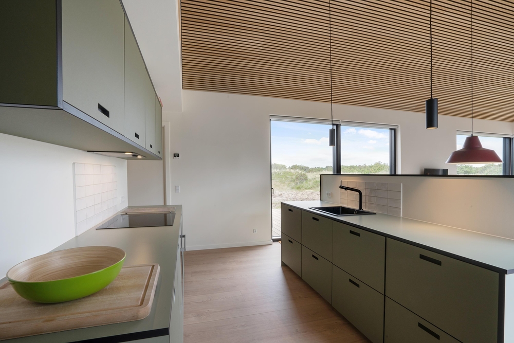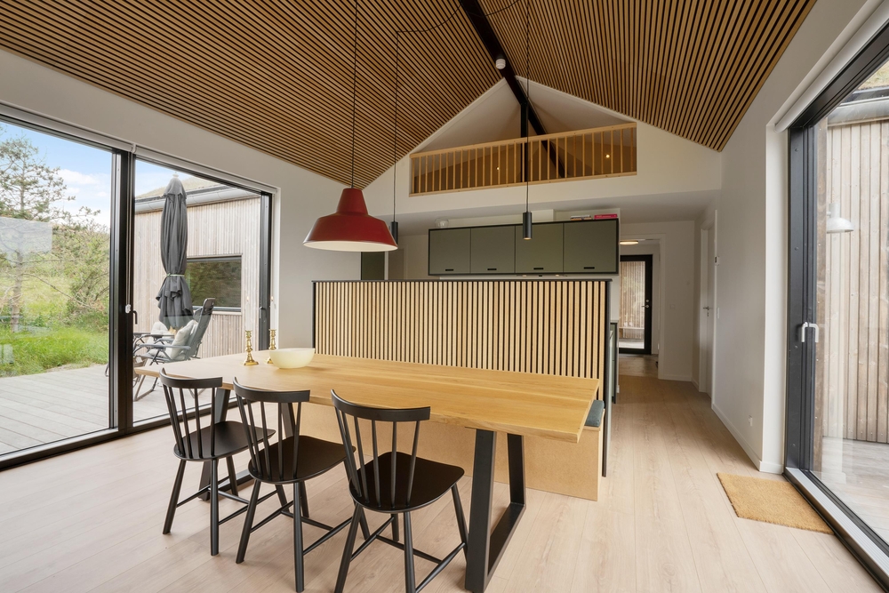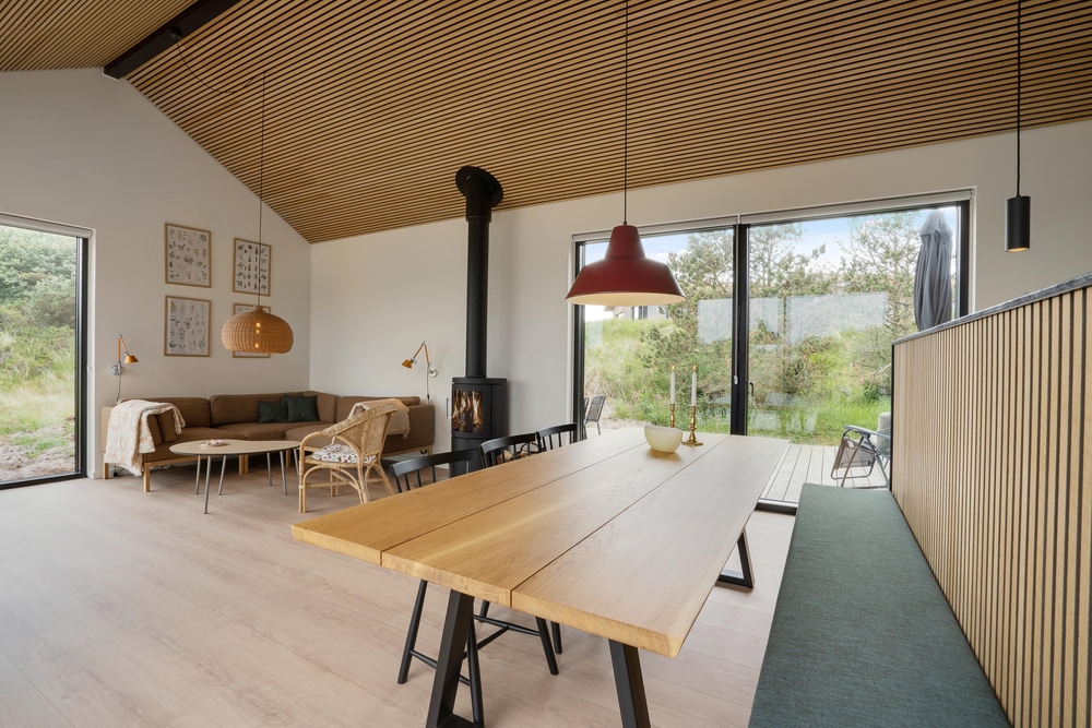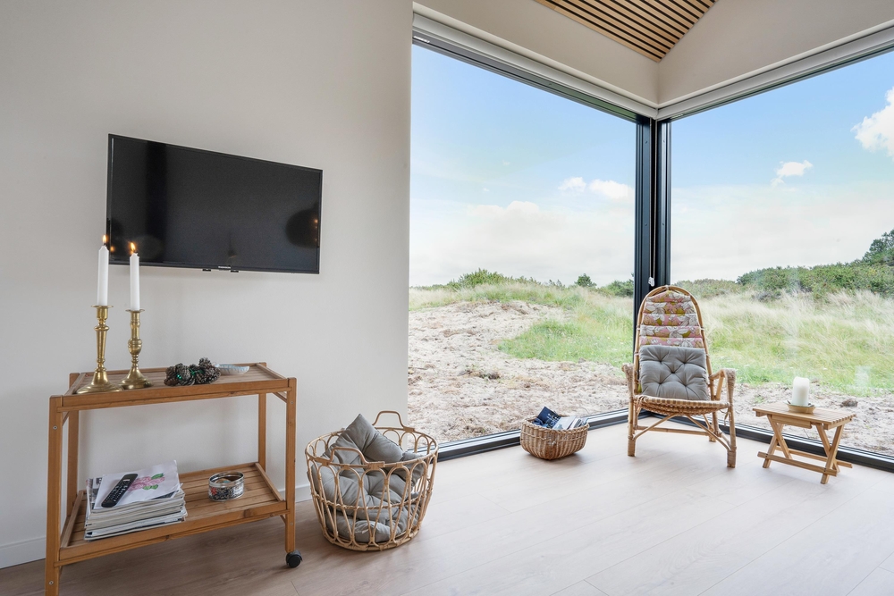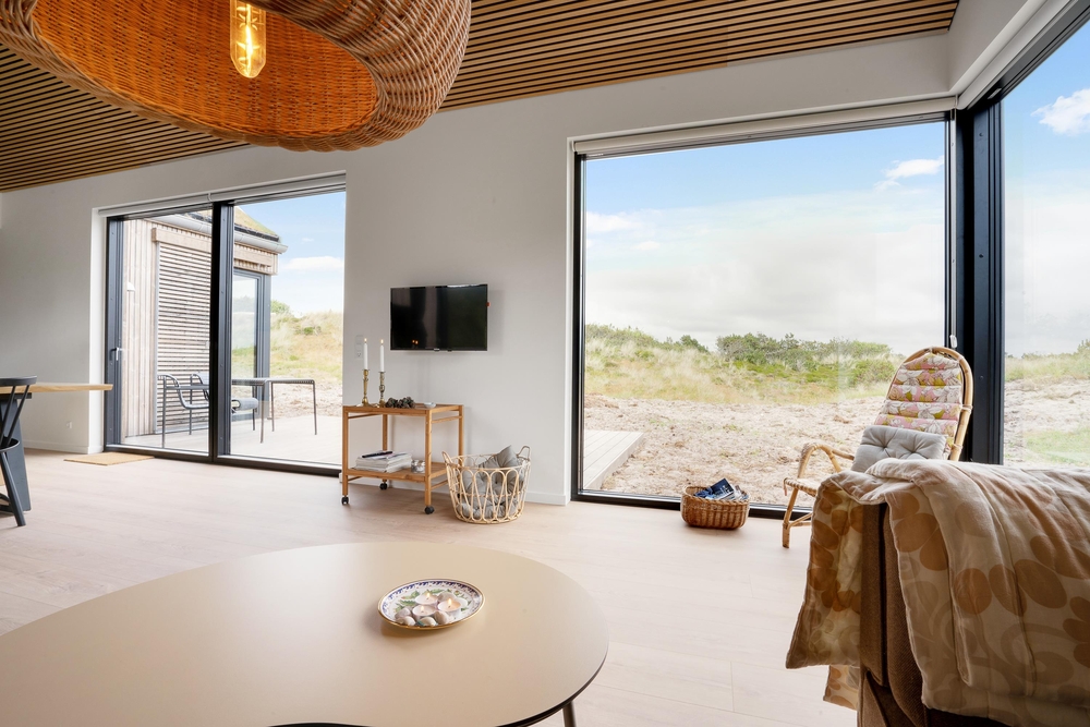 Das Ferienhaus wurde in 2021 neu gebaut und hat eine schöne sowie geschmackvolle Inneneinrichtung, in der ihr euch zweifelsohne sicherlich wohlfühlen werdet. Große Fenster, die nicht nur den Blick auf die schöne Natur freigeben, sondern auch viel Licht und Sonne in das Sommerhaus einladen, sind nur eines der Besonderheiten dieses modernen Ferienhauses.