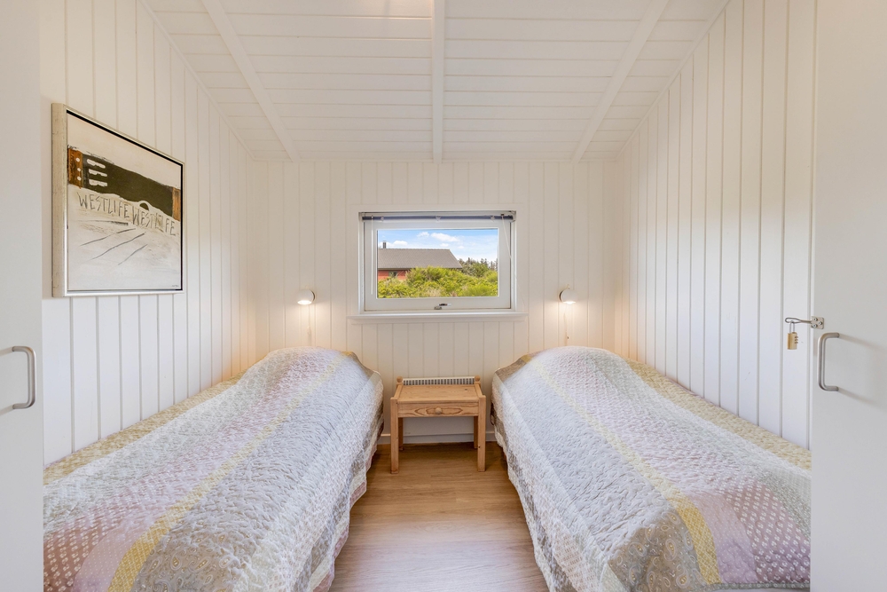 Nach einem erlebnisreichen Urlaubstag in Vejers und Umgebung schläft es sich gut in den 3 Schlafzimmer des Ferienhauses, um neue Energie für den kommenden Ferientag zu sammeln. Ein Schlafzimmer ist mit einem Doppelbett ausgestattet, das andere mit 2 Einzelbetten und das dritte mit einem Etagenbett.