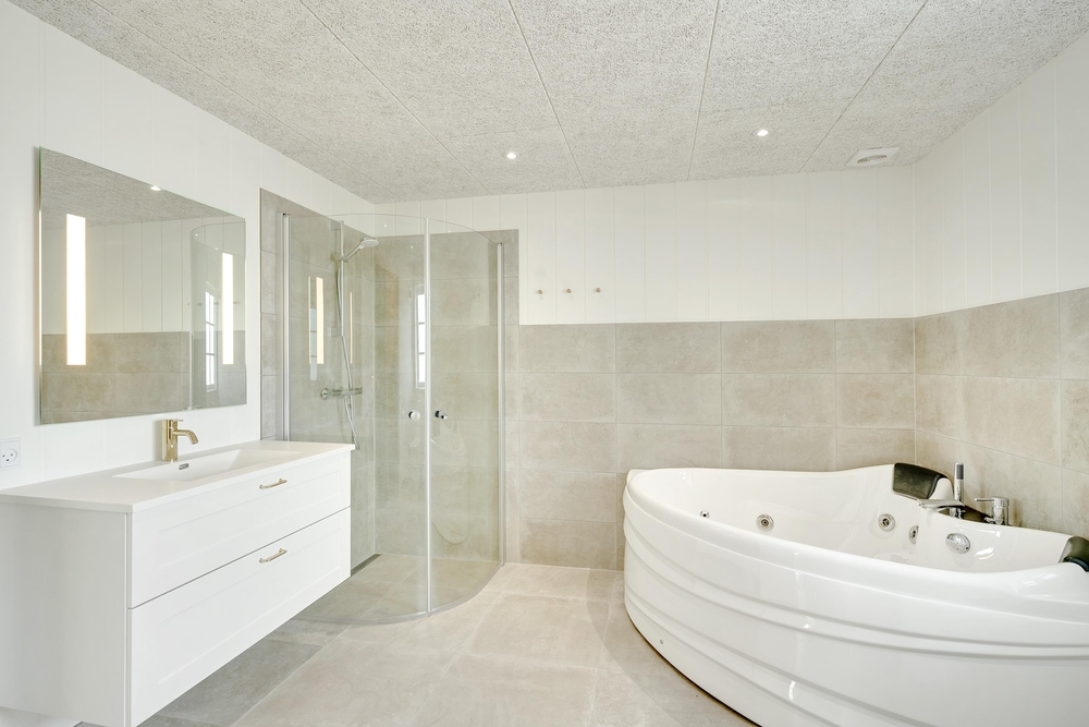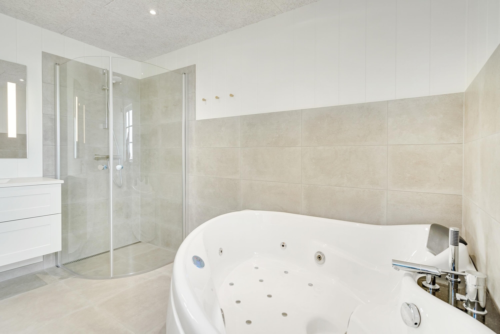 Zwei Badezimmer mit Fussbodenheizung, eines davon mit Whirlpool, sorgen dafür, dass es am frühen Morgen keine langen Wartezeiten für die Morgentoilette gibt.