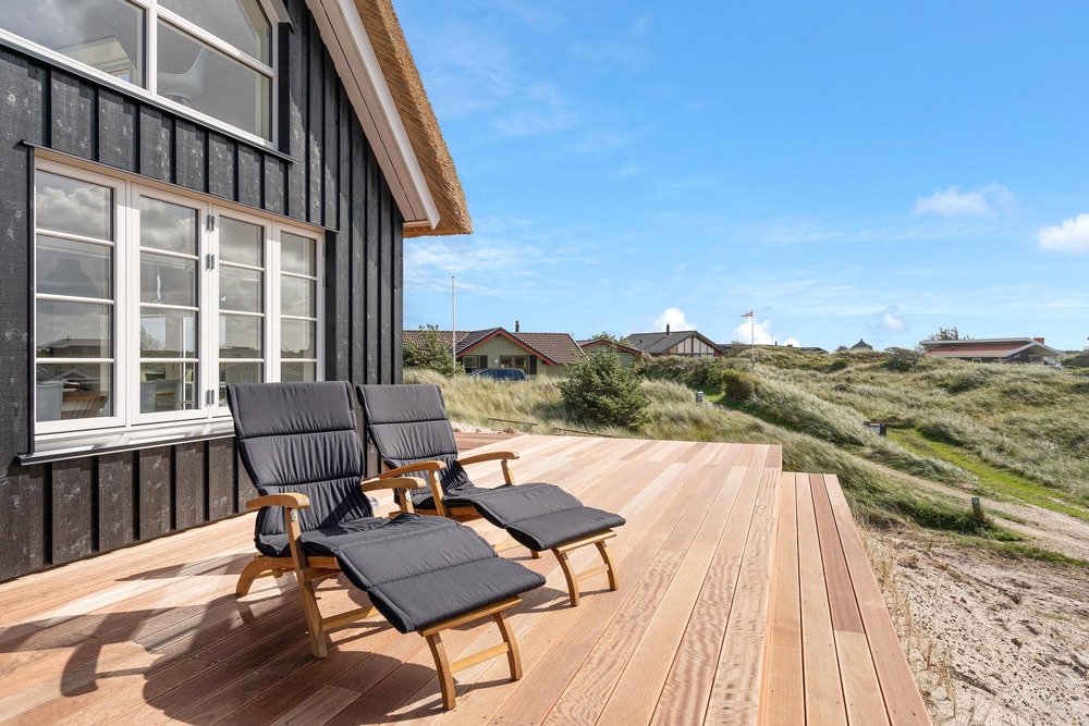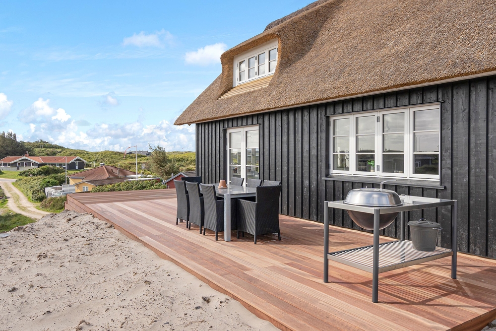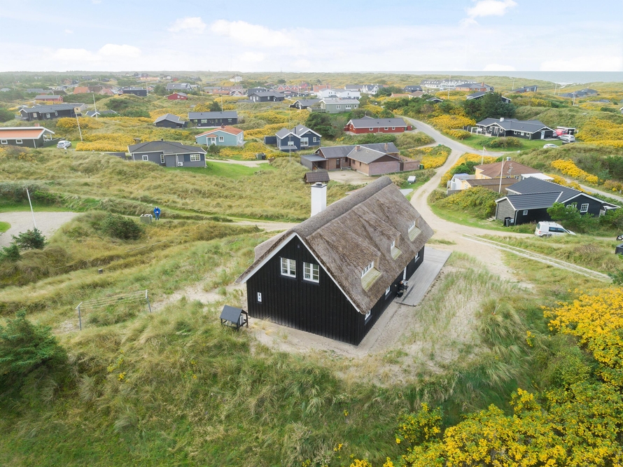 Auf einem schönem, fast 2000 m2 grossem Grund liegt nur 400 Meter vom herrlichen Sandstrand diesen in 2019 neu erbaute Reetdachhaus im Nordvej 42.