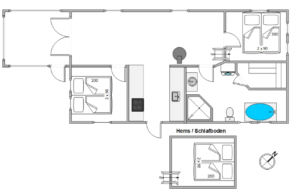 Ein Hems ist der perfekte Ort für die Kinder, um sich zurückzuziehen, ein Buch zu lesen, einen guten Film zu streamen oder einfach ganz vertieft zu spielen. Das Badezimmer verfügt über einen kleinen Whirlpool und Sauna. Bitte achtet darauf, dass der Whirlpool mit heißem Wasser gefüllt werden sollte, da das Wasser nicht erhitzt werden kann.