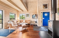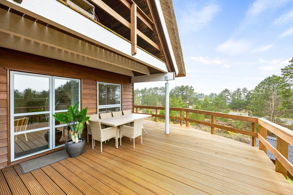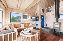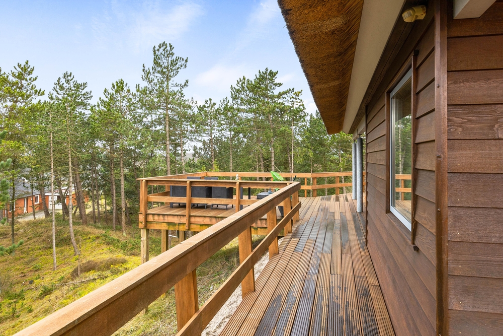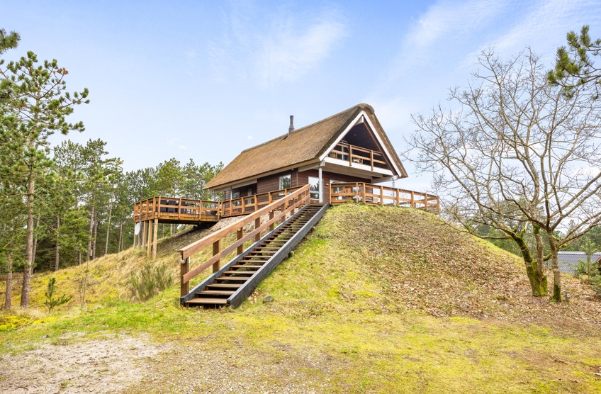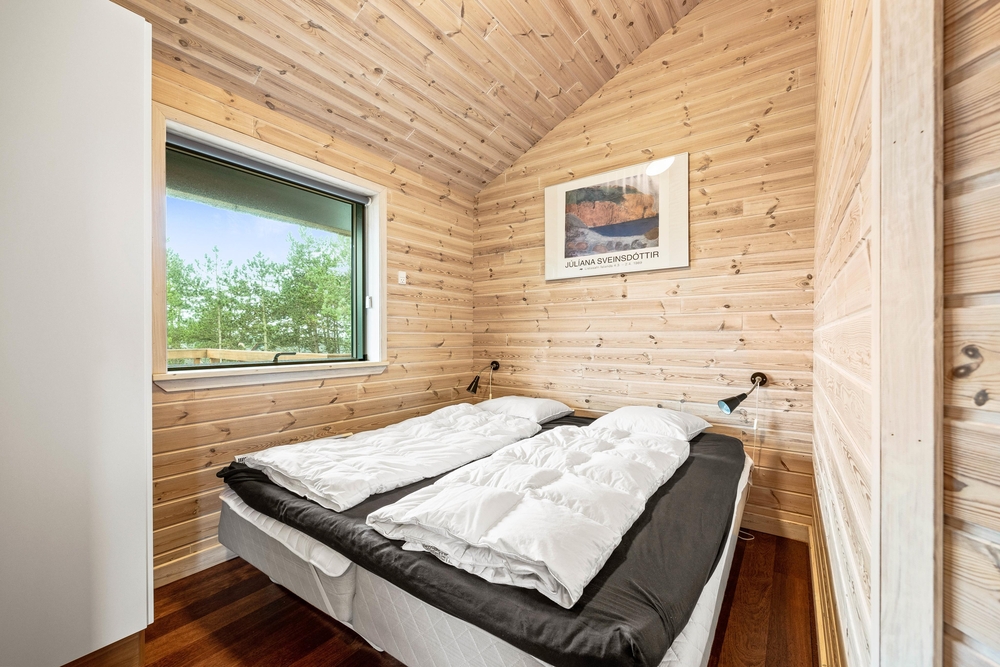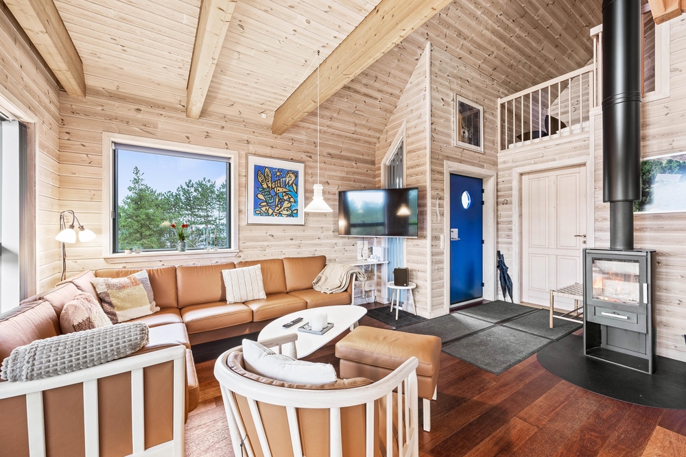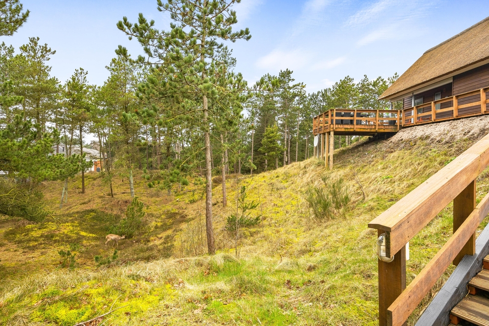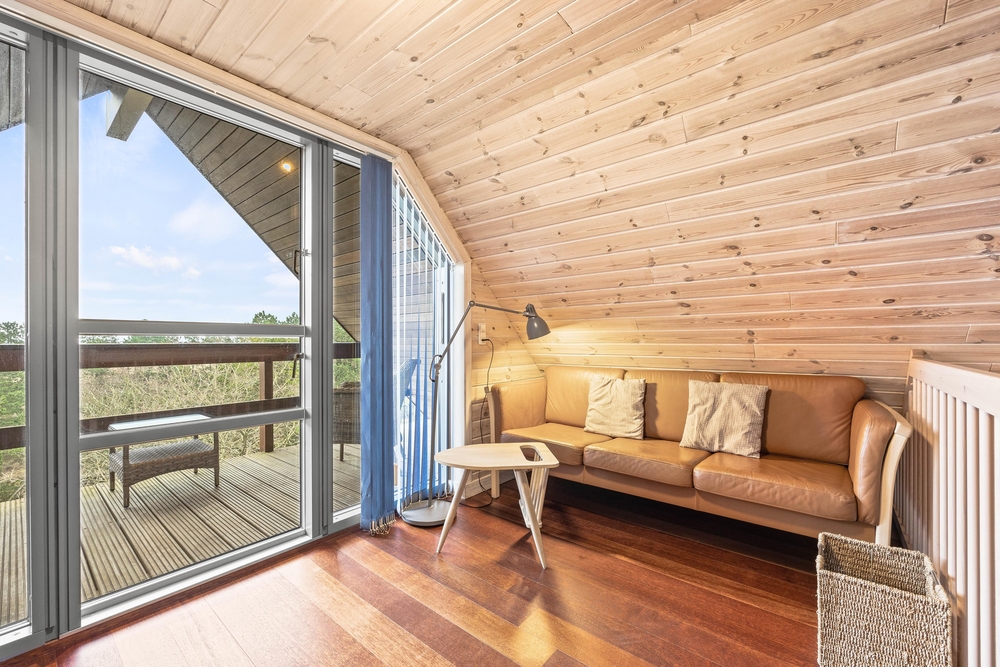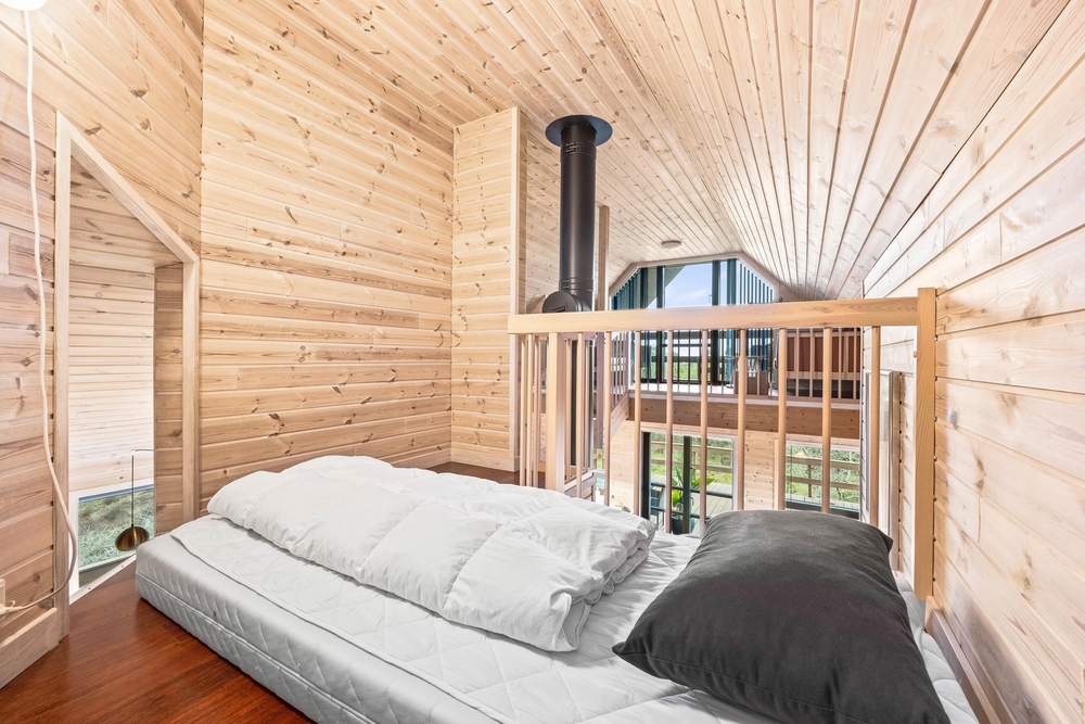 Sobald ihr das Auto geparkt habt, führt eine Treppe euch zum Ferienhaus, welches etwas oberhalb auf einen Hügel liegt. Von hier aus habt ihr eine sehr schöne Aussicht über die Naturumgebungen. Für das Ferienhaus wurden natürliche Materialen und hochwertiges Holz verwendet, welche sich auch im Innenbereich widerspiegeln und eine ruhige, angenehme Atmosphäre schaffen.