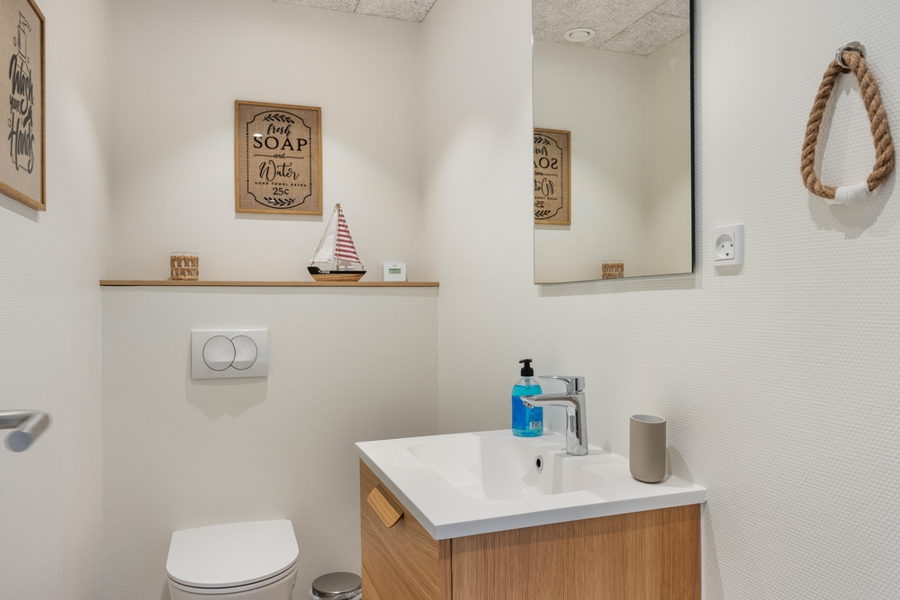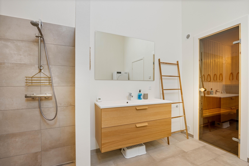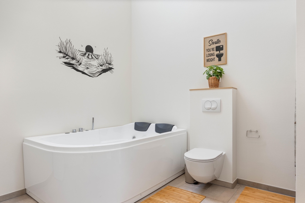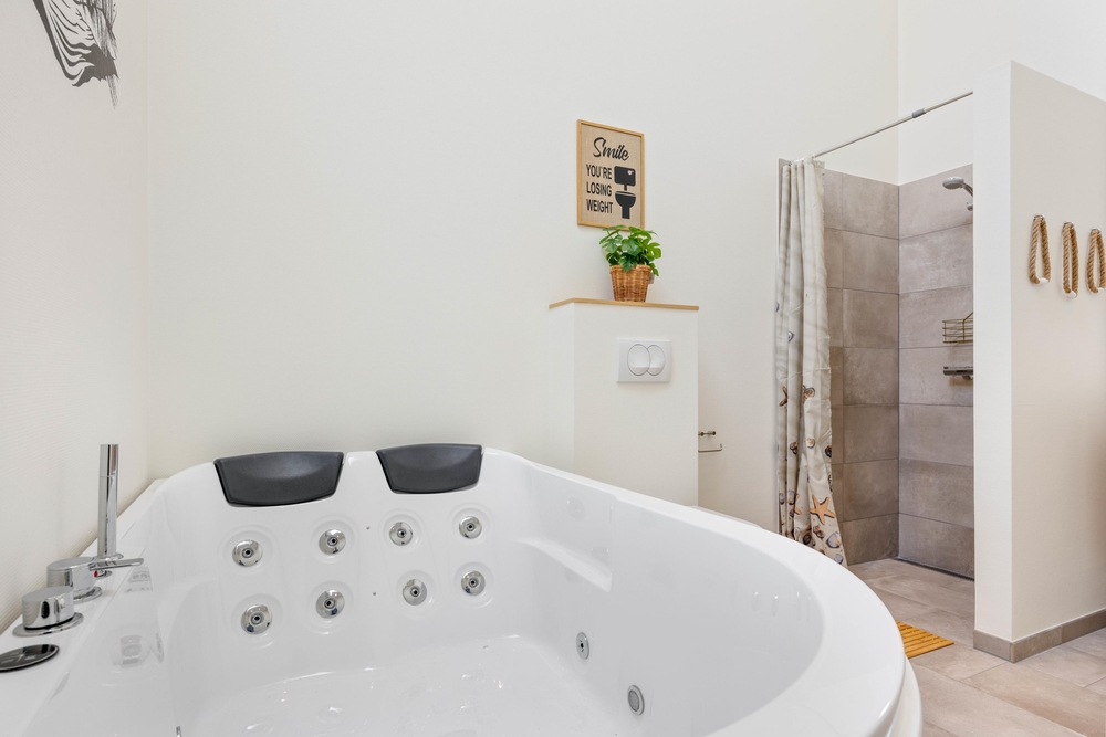 In der hochwertig ausgestatteten Küche findet ihr unter anderem eine Spülmaschine, eine Kühl-Gefrierkombi mit 94 l Gefriermöglichkeit und einen Induktionsherd. Das Herz jedes Hobbykochs wird hier höher schlagen. Praktischerweise verfügt diese Ferienwohnung gleich über 2 komfortable Badezimmer mit Fußbodenheizung. Hier braucht also niemand morgens Schlange zu stehen.