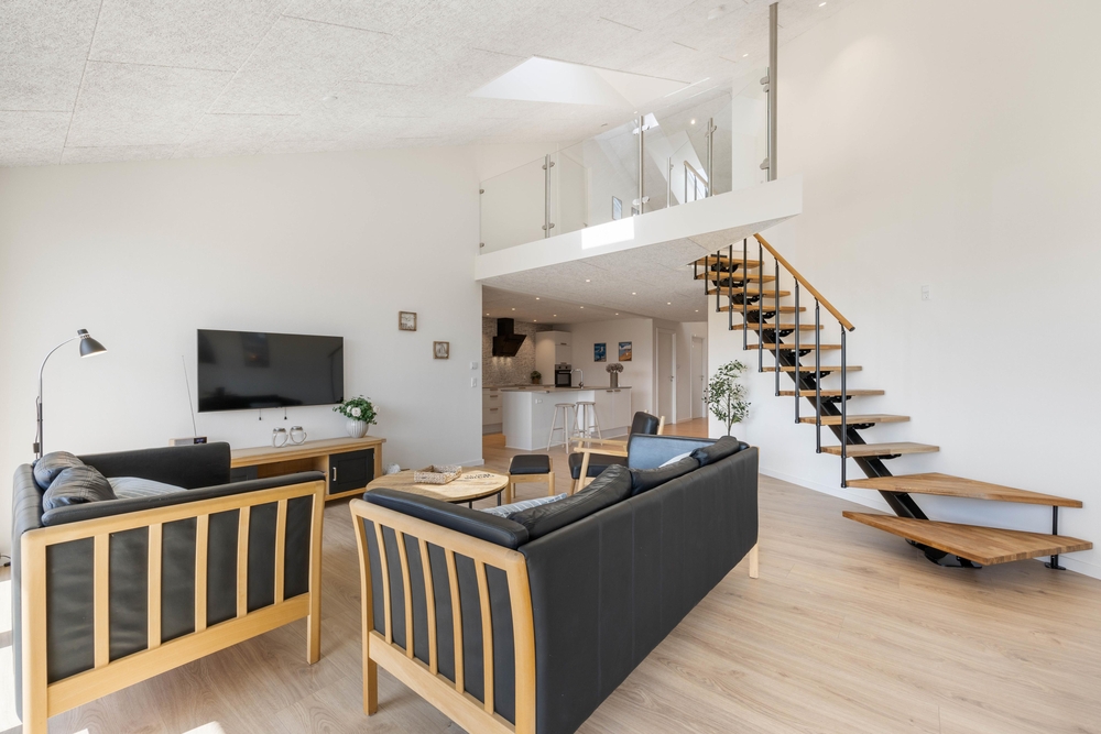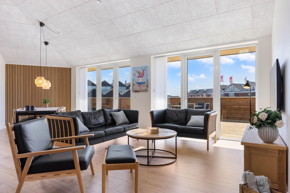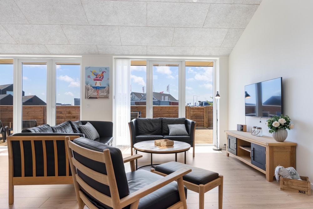 Mitten in Hvide Sande und nur wenige Meter von der Schleuse zum Ringkøbing Fjord entfernt, findet ihr diese komfortable Ferienwohnung. Auf 141 qm finden bis zu 6 Personen viel Platz zur Entspannung. Auch eure beiden Hunde dürfen sich auf einen gemeinsamen Urlaub mit euch freuen. Die 5 Sterne trägt diese moderne Ferienwohnung nicht umsonst. Es erwarten euch besondere Highlights, wie eine eigene Sauna und ein hochwertiger Whirlpool.