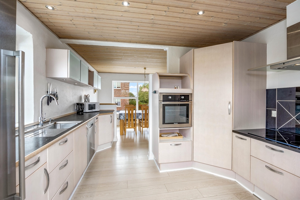 Die offene Küche ist geräumig und praktisch ausgestattet, damit ihr eure Lieblingsspeisen problemlos zubereiten könnt. Eine Geschirrspülmaschine steht euch als freundlicher Haushaltshelfer zur Seite.