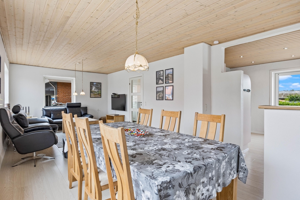 Das Ferienhaus ist auf mehrere Etagen verteilt. Das Zentrum des Sommerhauses bildet der gemütliche Wohnbereich, wo euch eine bequeme Couchecke zum Relaxen einlädt. Der angrenzende Esstisch lädt zu lustigen Spieleabenden mit der ganzen Familie ein.