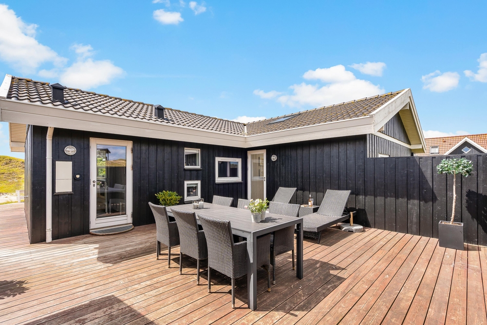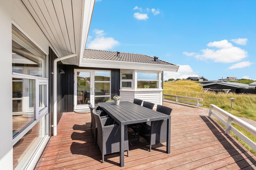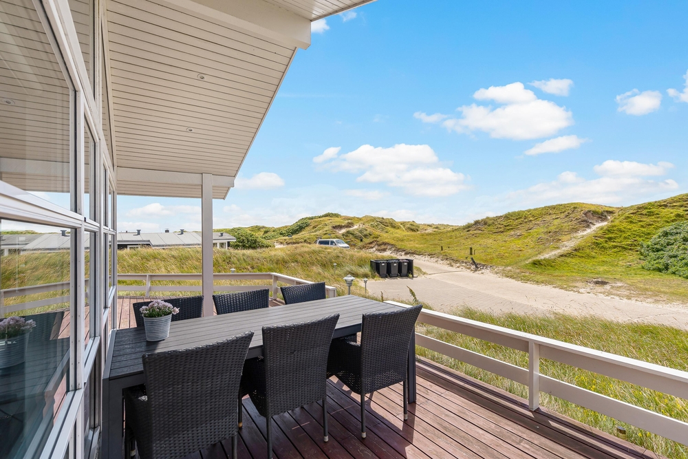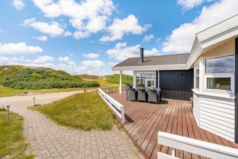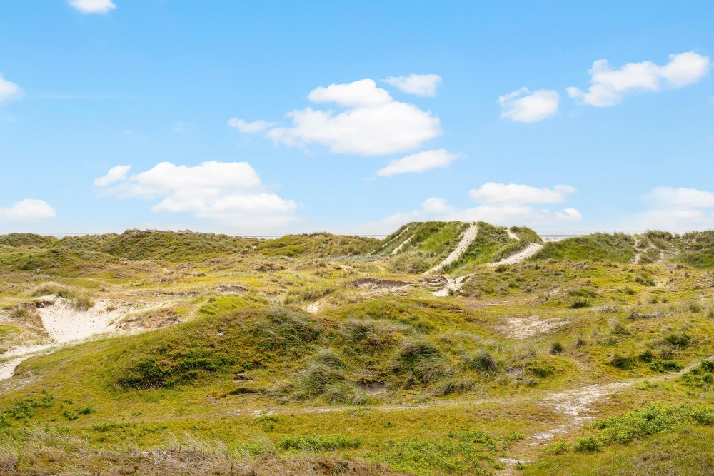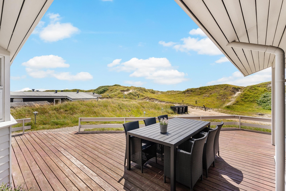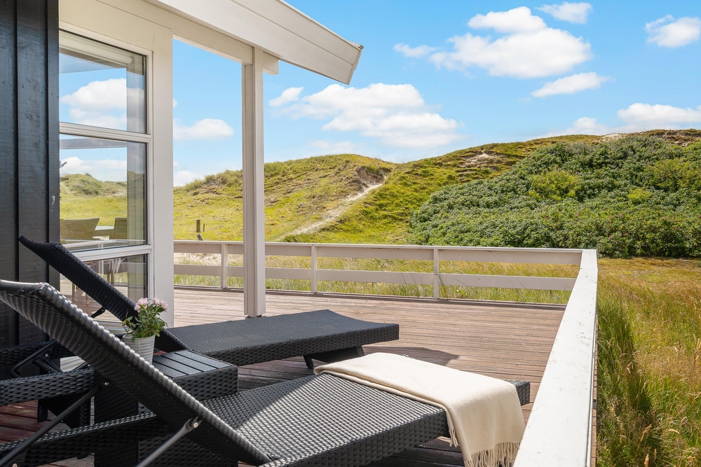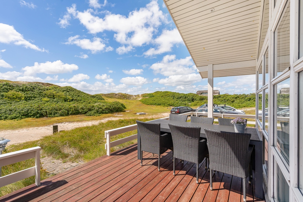 Von der an den Wohnbereich angrenzenden und nach Westen ausgerichteten Terrasse bietet sich euch ein traumhafter Ausblick! Eine hügelige Dünenlandschaft mit dem sich im Wind wiegenden Dünengras, blauer Himmel, so weit das Auge reicht, und ab und an schaut vielleicht auch einmal ein Hase oder ein Reh vorbei. Die Vögel zwitschern hoch am Himmel, und während ihr euch auf der Sonnenliege ausruht, können sich eure Kinder in der unmittelbaren Umgebung austoben oder auf der Schaukel und im Sandkasten spielen. Der Außenwhirlpool bietet Entspannungsmomente an der frischen Meeresluft, und für eine Erfrischung steht euch von April bis November eine Außendusche zur verfügung.