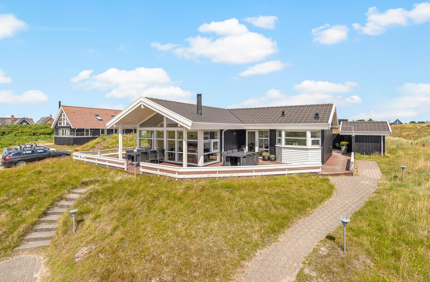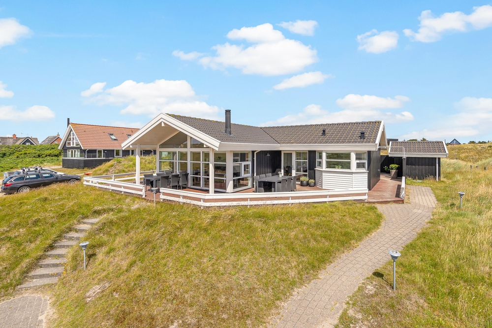 In absolut fantastischer Lage, unmittelbar angrenzend an die wunderschöne Dünenlandschaft, erwartet euch auf Nyby Klitvej 4 dieses schöne Ferienhaus mit Platz für bis zu 8 Personen. Aufgrund der 2 Badezimmer sowie insgesamt 125 m² Wohnfläche ist dieses Sommerhaus perfekt für einen Urlaub mit den besten Freunden oder mit der gesamten Familie geeignet. Eine Sauna, ein Außenwhirlpool sowie ein Kaminofen runden das tolle Angebot ab, wobei sich die Kinder auf einen Sandkasten sowie eine Schaukel freuen können ? willkommen auf der Insel Fanö.