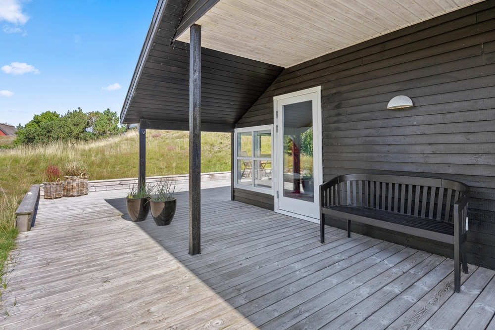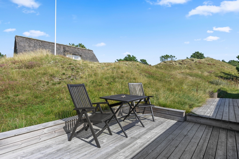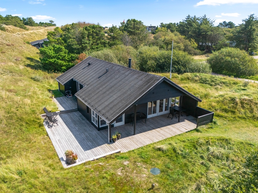 Euer Feriendomizil liegt auf einem ca. 2348 qm großen Naturgrundstück, das Dank seiner sanften Hügel und Bewachsung einen natürlichen Sichtschutz bietet. So könnt ihr euch auf einer der Terrassen entspannen und in den bequemen Gartenmöbeln zurücklehnen. Die Terrassenbereiche ziehen sich über drei Seiten des Ferienhauses und zusätzlich gibt es einen überdachten Bereich, so dass ihr stets einen gemütlichen Platz zum Verweilen finden könnt.