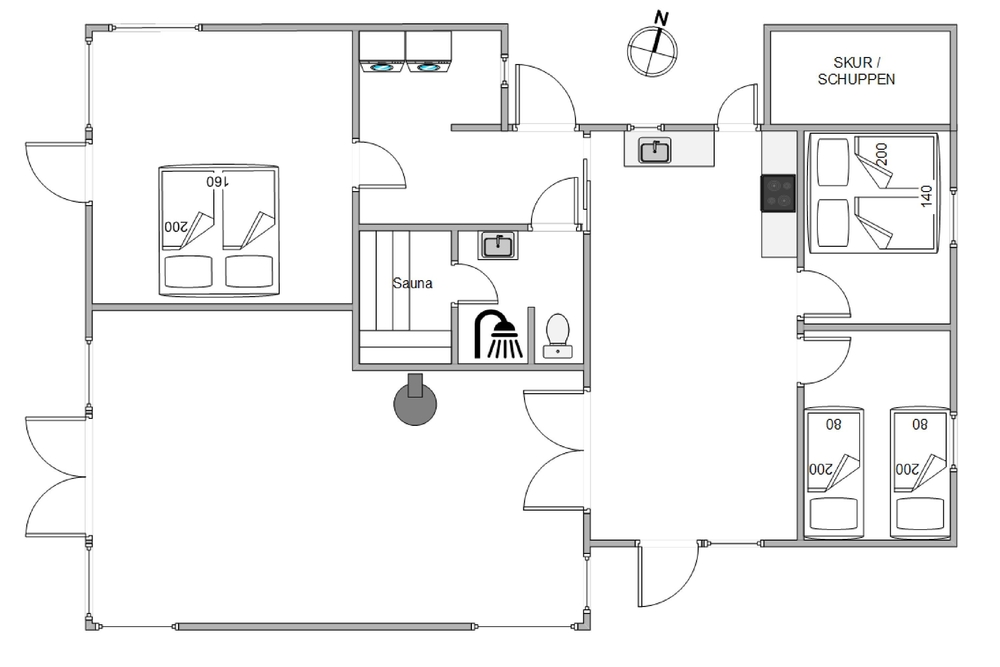 Genießt auch die anderen Annehmlichkeiten dieses modernen und gemütlichen Ferienhauses und gönnt euch eine Auszeit in der Sauna. Die wohlige Wärme und die entspannende Atmosphäre werden euch helfen, Körper und Geist zu revitalisieren. Wenn sich der Urlaubstag dem Ende zuneigt, findet ihr in den drei Schlafzimmern einen gemütlichen Rückzugsort.