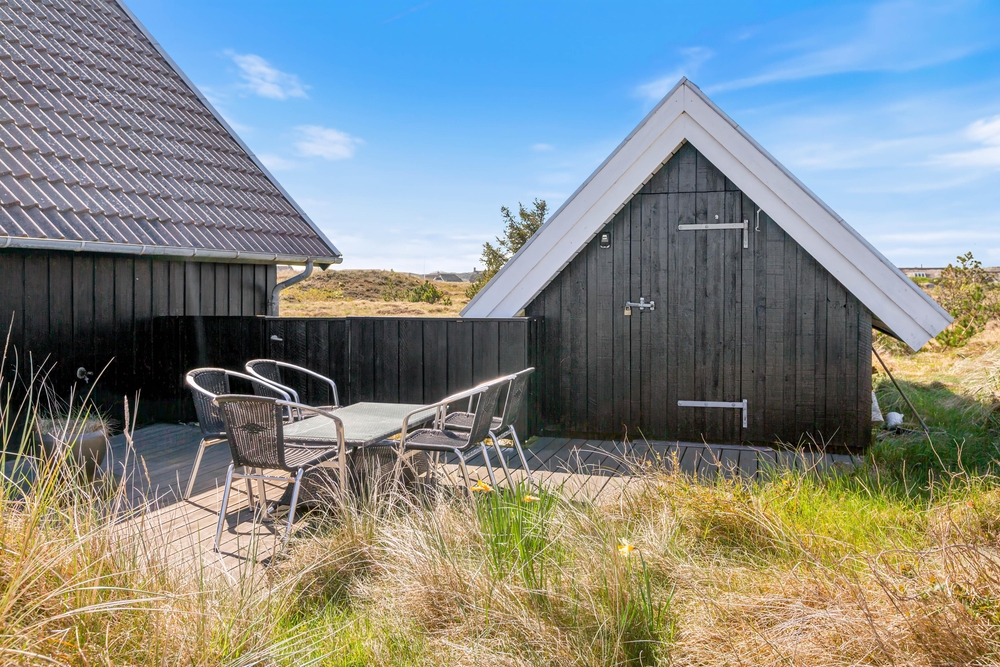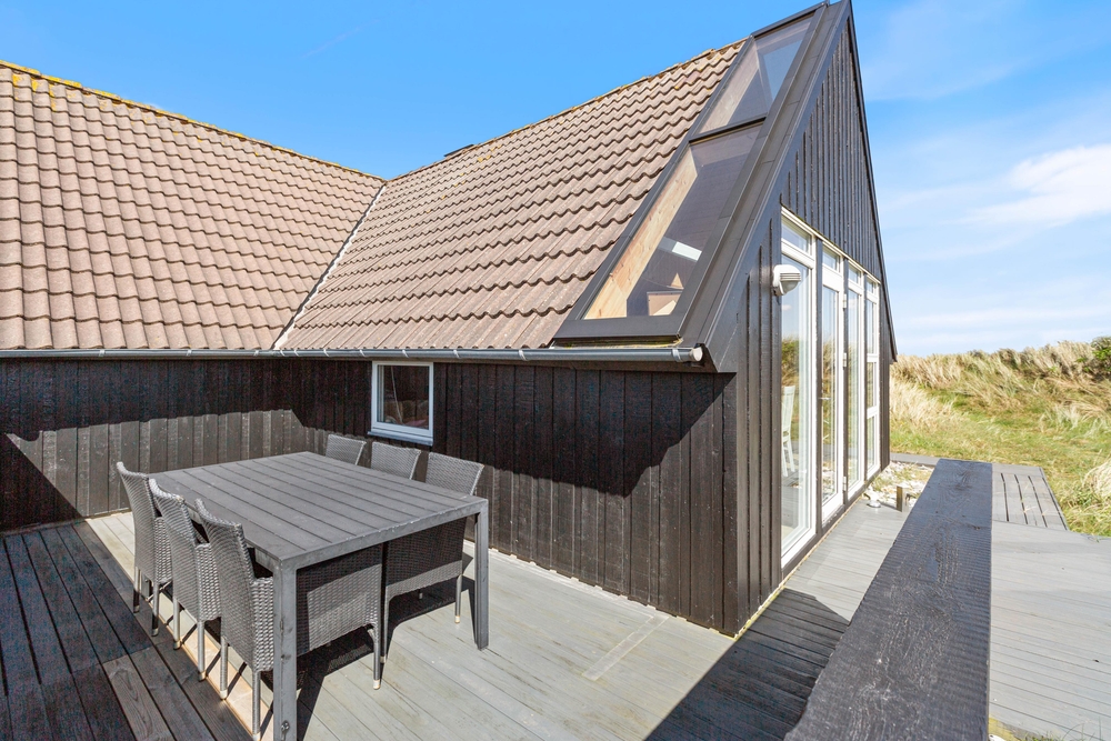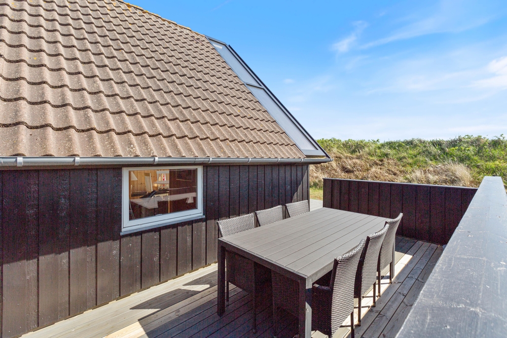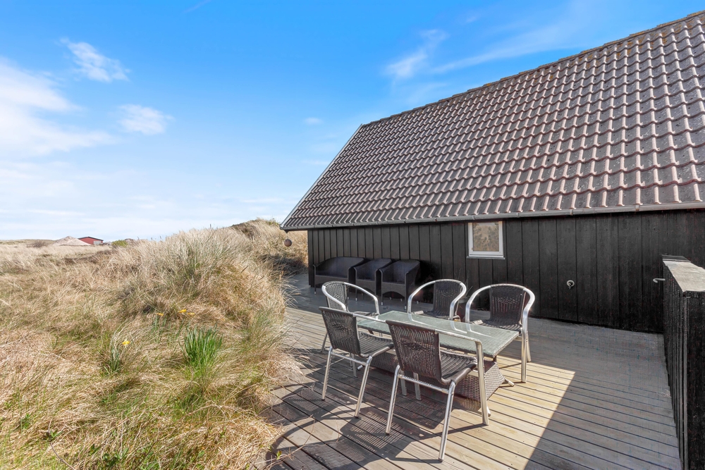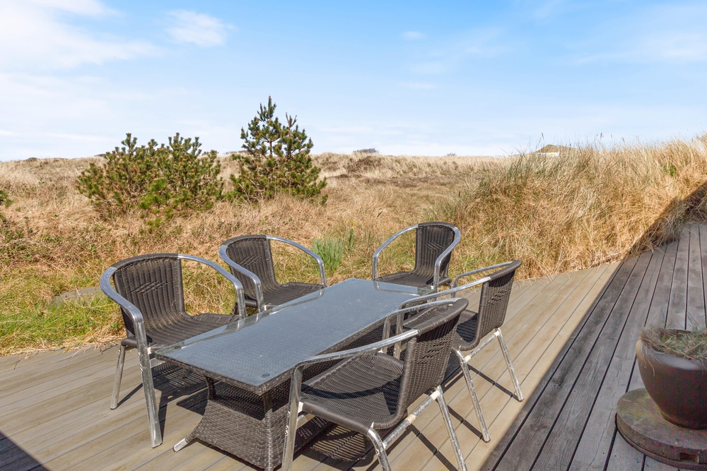 Vom Wohnraum aus habt Ihr Zutritt zur tollen teilweise abgeschirmten Terrasse, die mit guten und bequemen Gartenmöbeln ausgestattet ist. Die Terrasse zieht sich um das ganze Haus, sodass Ihr dem Verlauf der Sonne folgen könnt. Auch Eure Hunde werden den ganzen Tag über ein schattiges Plätzchen finden. Beim Sonnenbaden könnt Ihr die schneeweissen Möwen am tiefblauen Himmel beobachten.