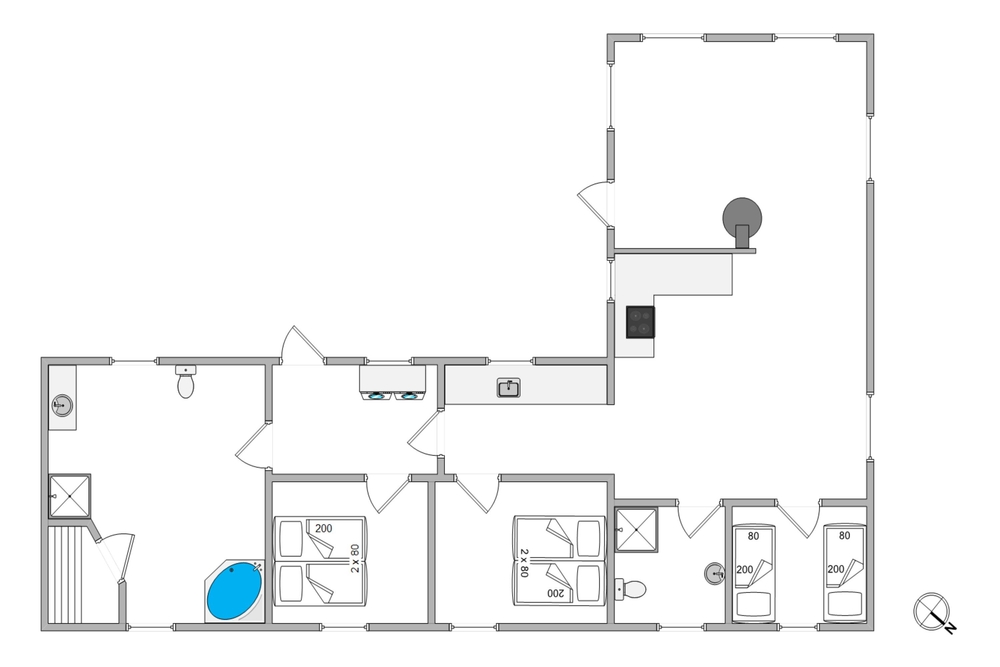 Das Ferienhaus ist unglaublich schick und einladend eingerichtet, so dass Ihr euch sofort wohlfühlen werdet. Es ist praktisch und mit vielen guten Details ausgestattet und zudem behindertengerecht. Z.B. ist die helle Küche aufgeteilt, damit Platz für einen Rollstuhl vorhanden ist und alle beim Kochen dabeisein können.