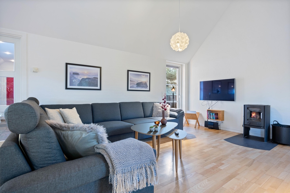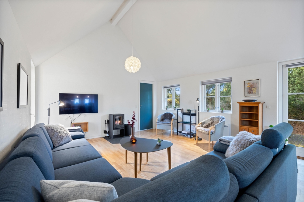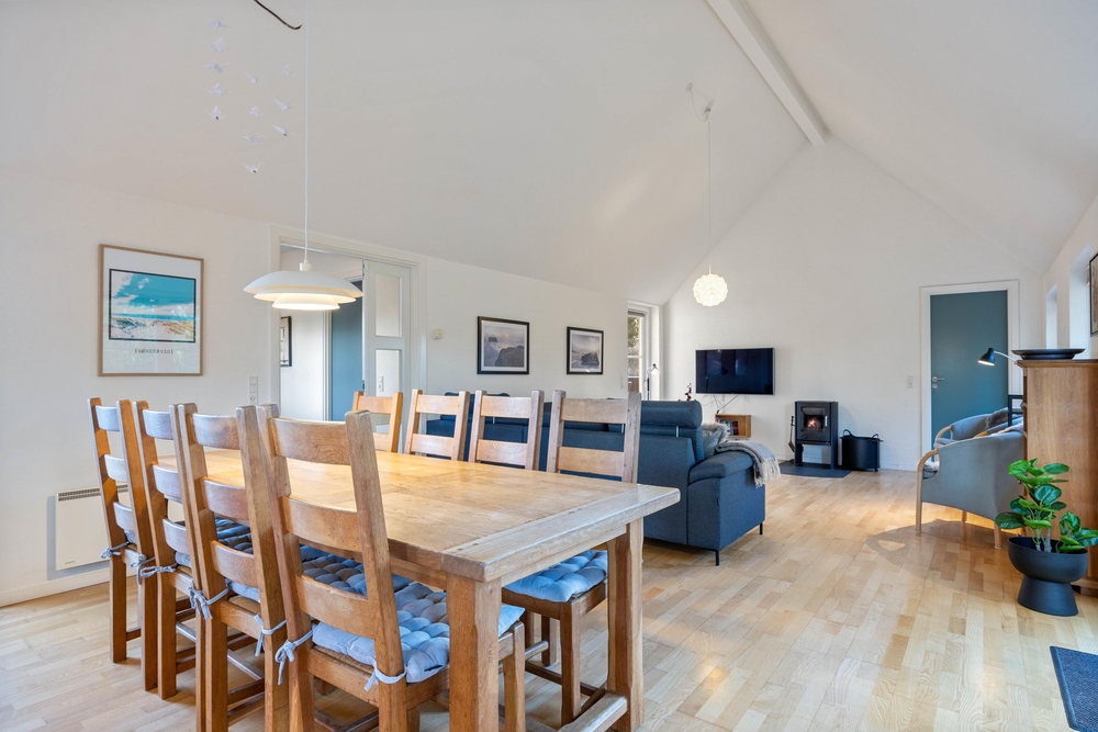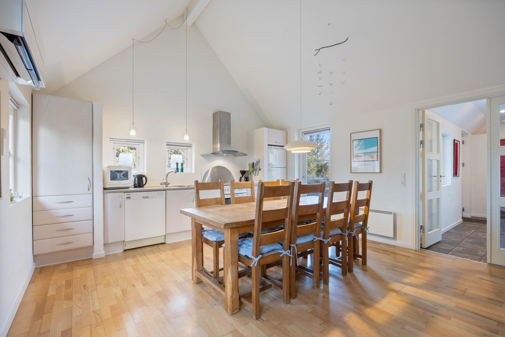 Der große, offene Wohnbereich mit gemütlicher Couch-Ecke, rustikalem Esstisch und moderner Küche mit Spülmaschine macht das Miteinander im Opstrupsvej 47 B leicht. Denn die meiste Zeit werdet ihr wahrscheinlich alle gemeinsam hier verbringen ? beim Faulenzen, Spielen oder Kochen.