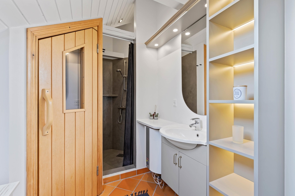 Wem der Wunsch nach noch mehr Wärme und vor allem Entspannung steht, der nutzt einfach die im Ferienhaus vorhandene Sauna für eine kleine Auszeit. Gönnt euch entspannende Momente, was gerade nach einem langen Tag an der frischen Luft einen tollen Abschluss bildet, bevor ihr es euch noch mit einem guten Glas Wein vor dem Kaminofen gemütlich macht.