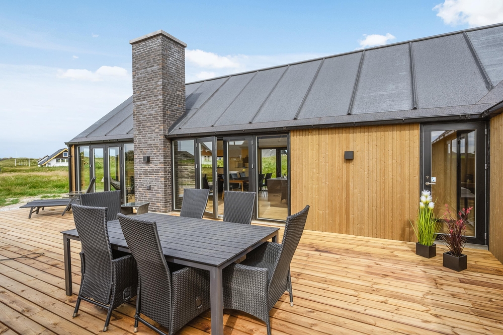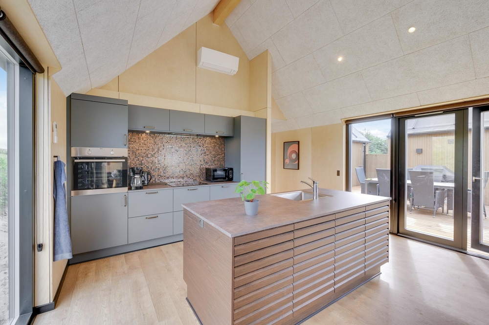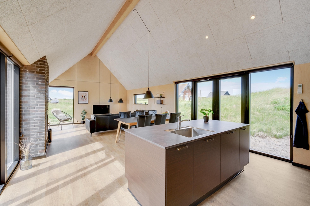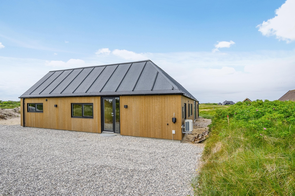 Inmitten von Heide- und Dünenlandschaften findet ihr dieses, in 2021, neu gebaute Ferienhaus im Opstrupsvej 58 in Klegod.