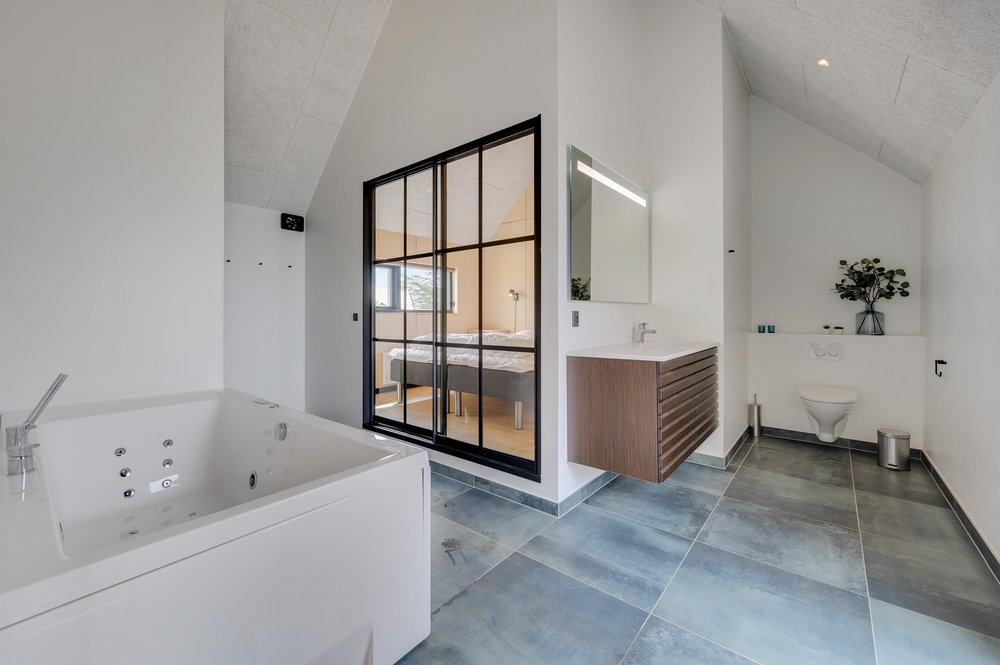 Das größere der beiden Badezimmer, das direkt an eines der Schlafzimmer grenzt, hat einen Whirlpool, in dem ihr euch ein entspannendes Bad gönnen könnt.