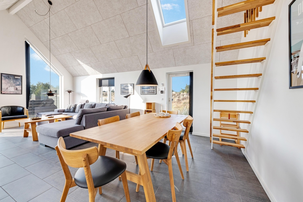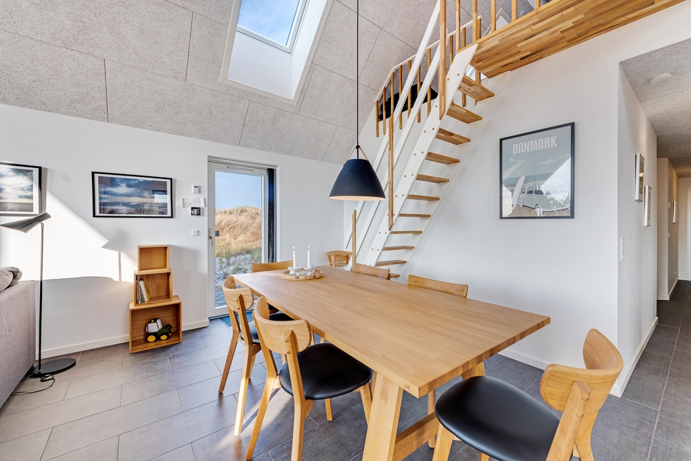 In der einmaligen und für Holmsland Klit charakteristischen Dünen- und Heidelandschaft, steht dieses schöne Ferienhaus für euren Urlaub mit der Familie oder Freunden bereit. Dieses stilvoll eingerichtete Ferienhaus bietet euch mit 3 Schlafzimmern, einem schönen Loft und 2 Bädern eine wunderbare Urlaubskullisse. Euer Hund ist hier ebenfalls willkommen.