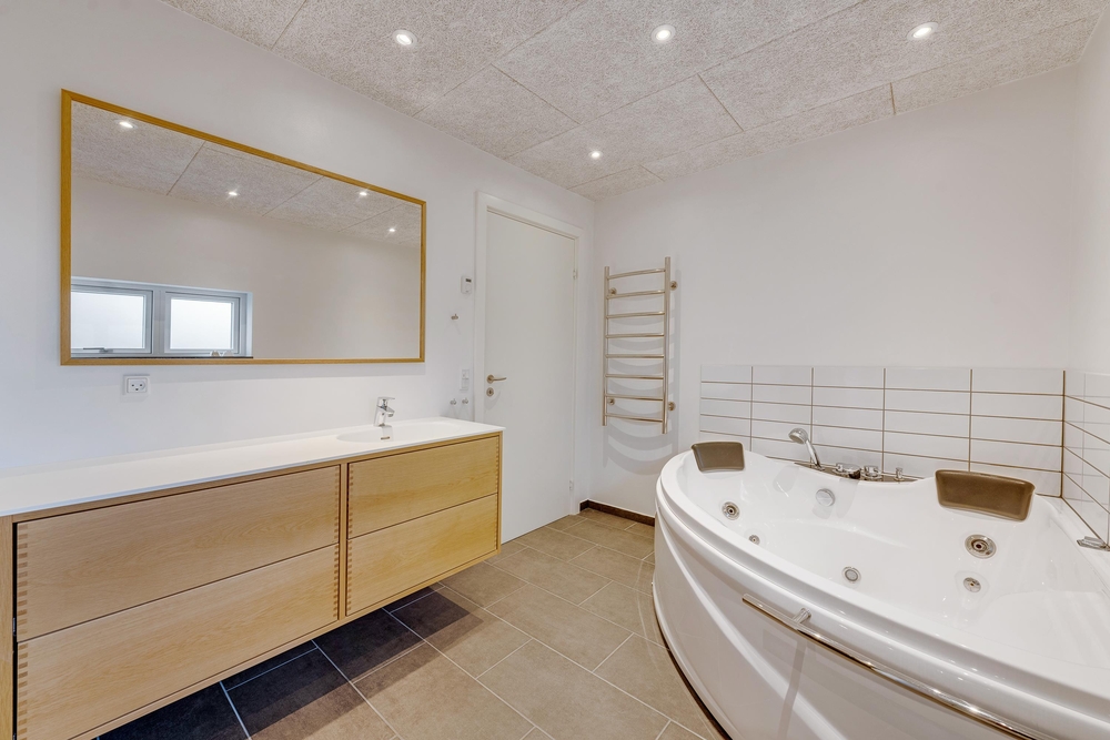 Fühlt euch von Beginn an willkommen. Hier im Opstrupsvej 69 wurde bis ins Detail geplant. Die großen Fenster des Wohnzimmers lassen viel Licht herein und bieten eine phantastische Aussicht. Hohe Decken, eine Fußbodenheizung durch eine energiesparende Luft-Wasser-Heizung sowie freies Wlan runden das Gesamtbild ab.