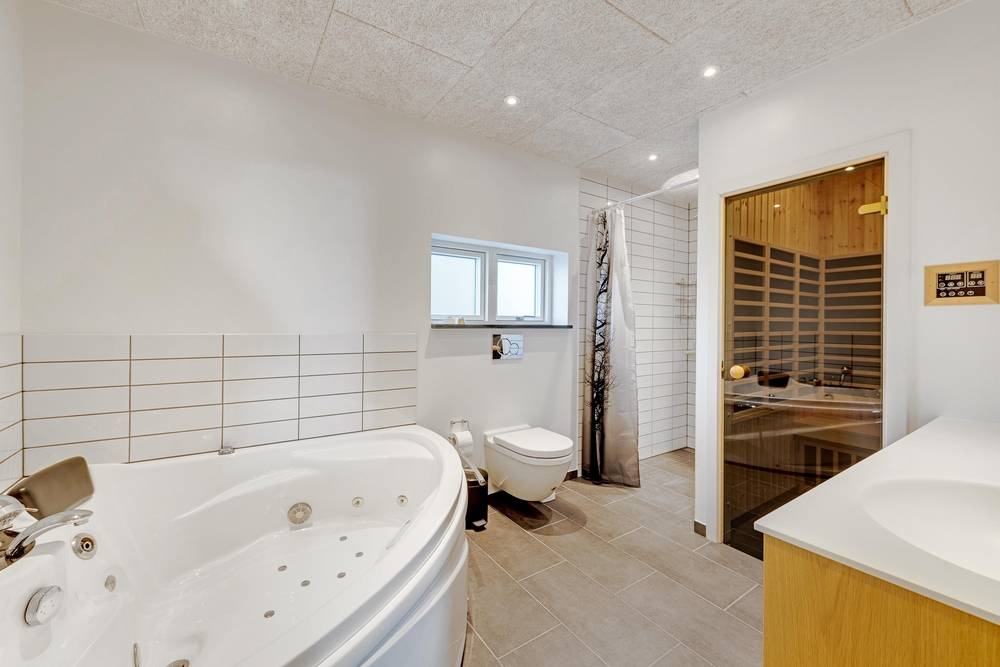 Denn hier an der Nordsee kann es durchaus Tage geben, an denen Regen und Sturm vorherrschend sind. Hier im Opstrupvej 69 gibt es jedoch kein Problem, denn ihr habt eine eigene Wellnessabteilung: Infrarotsauna, Whirlpool und damit Entspannung pur. Das alles, während der Westwind draußen um das Haus tobt ? Gemütlichkeit pur.