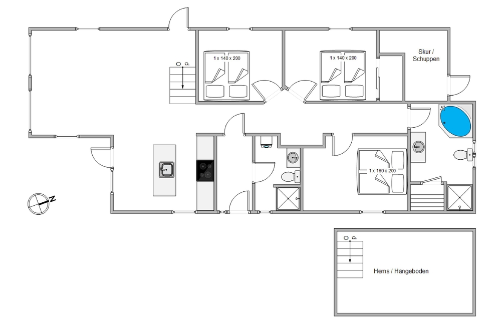 Die offene Küche mit Kochinsel ist perfekt für die Gemütlichkeit beim Kochen und Planen der kommenden Tage. In der Zwischenzeit können sich die Jugendlichen oder Kinder auf dem Dachboden amüsieren, sich mit ihrem Computer oder Spielsachen in ihre eigene kleine Welt zurückziehen. Waschmaschine und Trockner sorgen jederzeit für saubere Kleidung ? ganz egal, wie stürmisch die Westküste sich zeigen sollte.