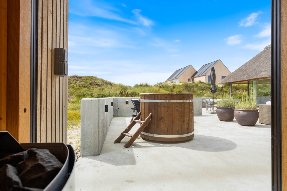 An warmen Tagen könnt ihr euch unter der Außendusche am Haus abkülen. Selbstverständlich wurde bei diesem modernen Ferienhaus auch an eine Außensauna gedacht. Als Highlight nach dem Saunagang steht euch hier ebenfalls ein Kaltwasserbecken zur Verfügung, in das ihr eintauchen könnt. Zum Abschluss des Tages könnt ihr auf dem hauseigenen Gasgrill ein köstliches Abendessen zubereiten und dies auf der schönen Terrasse genießen.