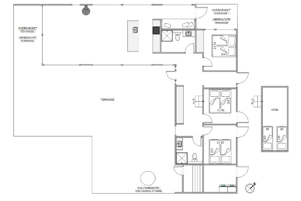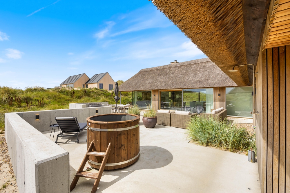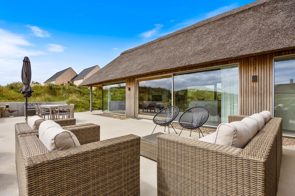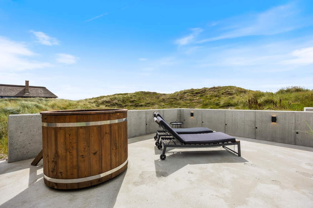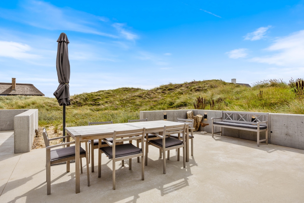 Das Ferienhaus am Opstrupsvej 78 verfügt über mehrere offene, abgeschirmte und überdachte Terrassen, sodass ihr jederzeit einen sonnigen und windgeschützten Platz finden könnt. Mit einem kalten Getränk oder einer heißen Tasse Kaffee in der Hand kann man die umliegende Natur wunderbar und ungestört genießen. Die Nordsee und den schönen Strand findet ihr nur 450 Metern vom Ferienhaus entfernt.