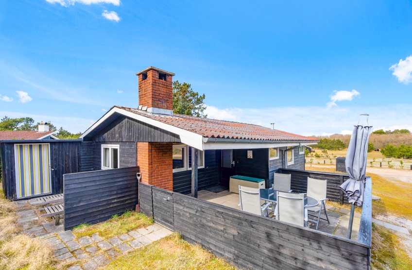 Dieses kleine und urgemütliche Sommerhaus liegt in ruhiger Lage, am Fuße einer Düne und auf der Rückseite umgeben von Bäumen und Büschen, auf Østre Klitvej 29. Die Adresse des Ferienhauses gehört in den Ort Rindby auf der Insel Fanø ? knappe 650 m entfernt vom herrlichen Sandstrand ? einem der schönsten und breitesten Strände Dänemarks.