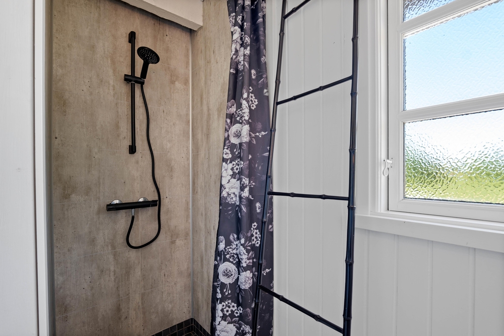 Die schöne Wohnküche ist mit einem Kühlschrank (20 Litern Gefrierkapazität), Mikrowelle und Geschirrspüler ausgestattet. Das Ferienhaus verfügt über 2 Schlafzimmer im Haupthaus, wovon eines mit einem Doppelbett und eines mit einem Schlafsofa ausgestattet ist. Des Weiteren findet ihr im Anbau noch 2 weitere Schlafzimmer. 2 Zimmer sowie ein separates Badezimmer wurden im geräumigen Nebengebäude untergebracht. Das Badezimmer im Haupthaus ist mit einer Fußbodenheizung ausgestattet. Das Badezimmer im Nebengebäude verfügt über keine Fußbodenheizung.