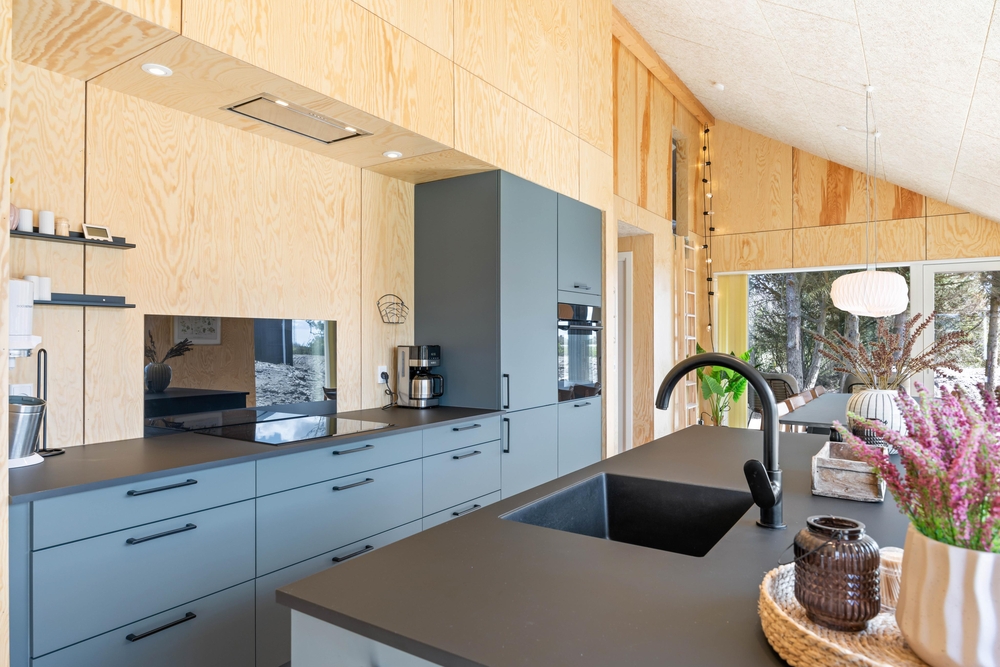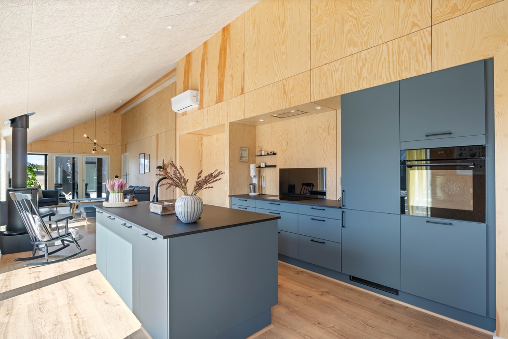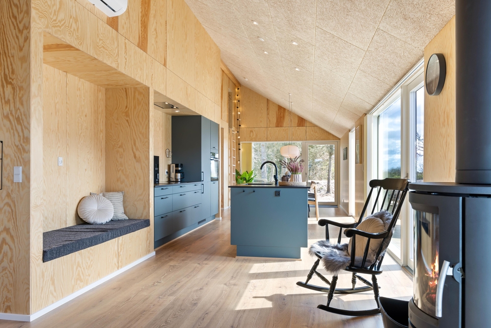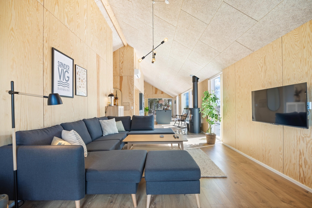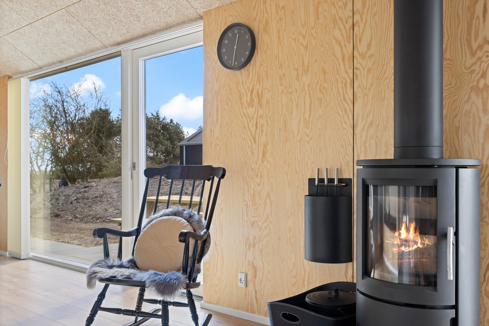 Das Herzstück des 120 m2 großen Ferienhauses ist das große, helle Wohnzimmer, welches den Rahmen für viele gemütliche Momente bietet. Der Holzofen, mit seinem Knistern im Hintergrund, vervollständigt die gemütliche Atmosphäre und sorgt gleichzeitig für kuschelige Temperaturen. Alternativ wird das Ferienhaus mittels einer energieeffizienten Wärmepumpe beheizt.