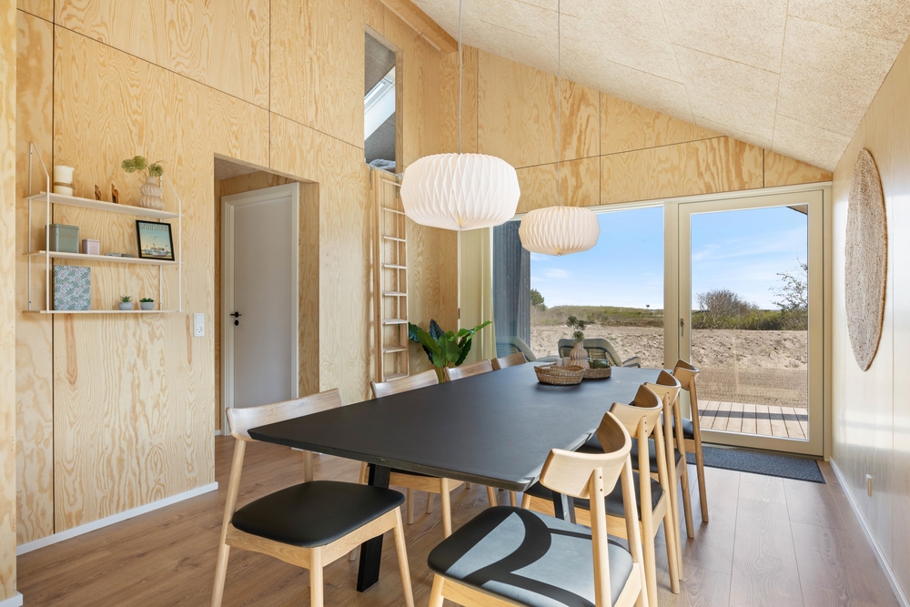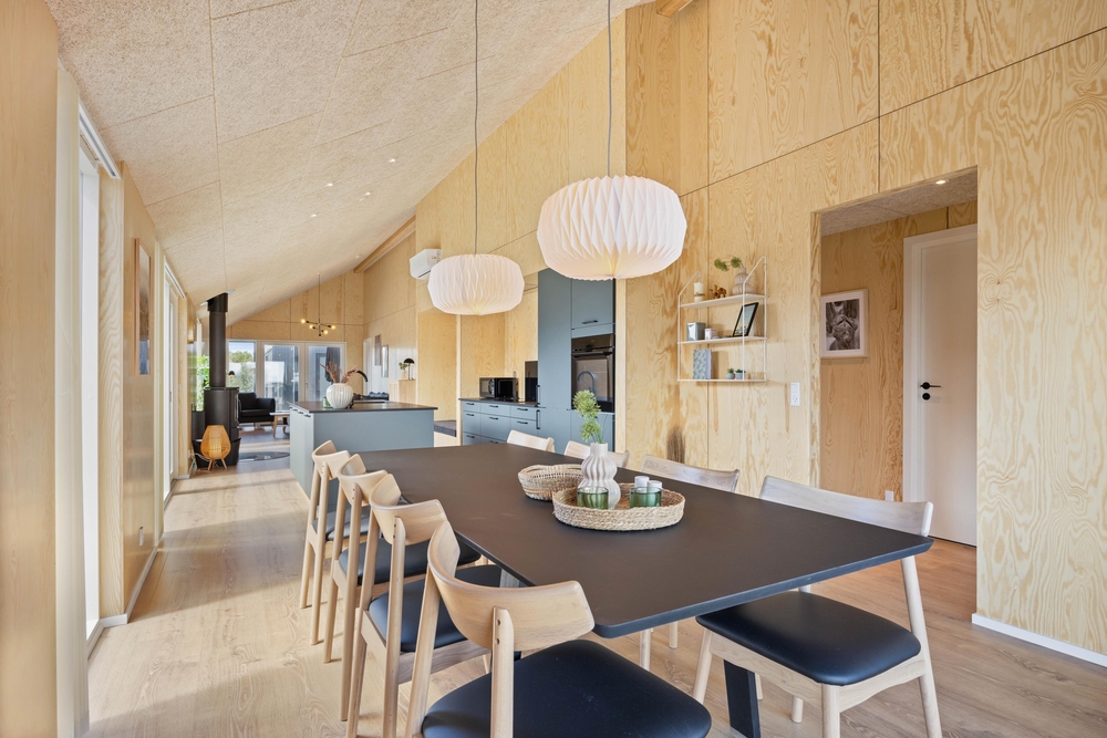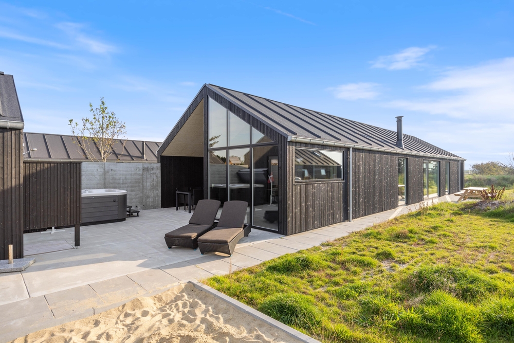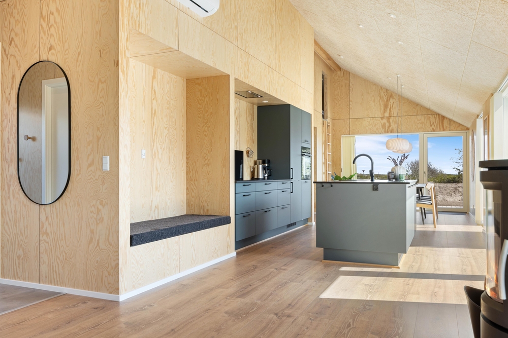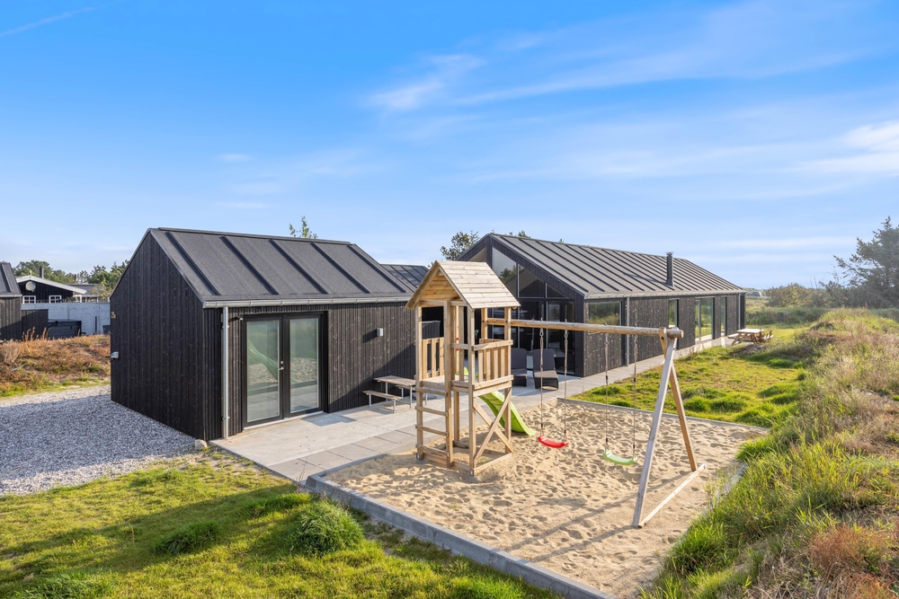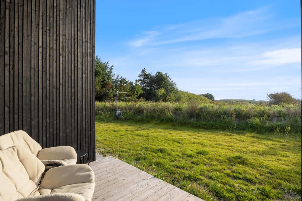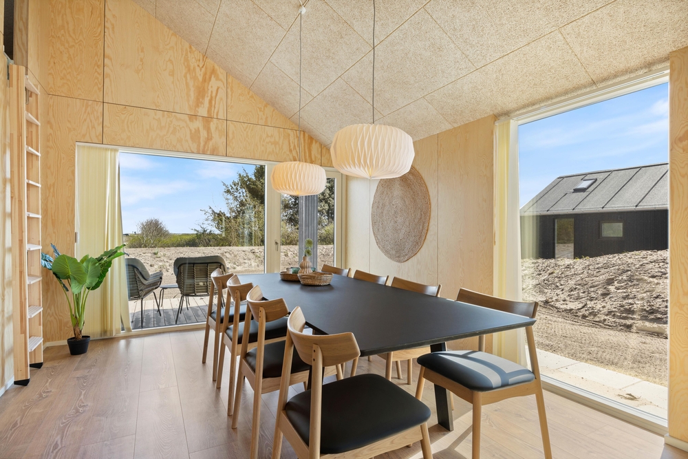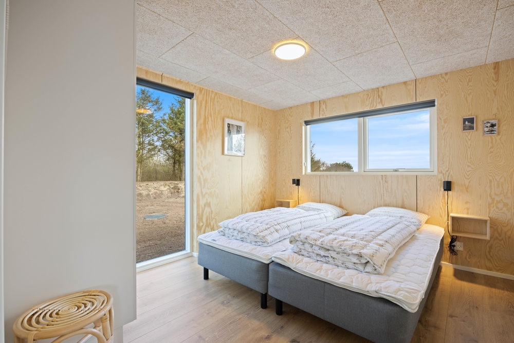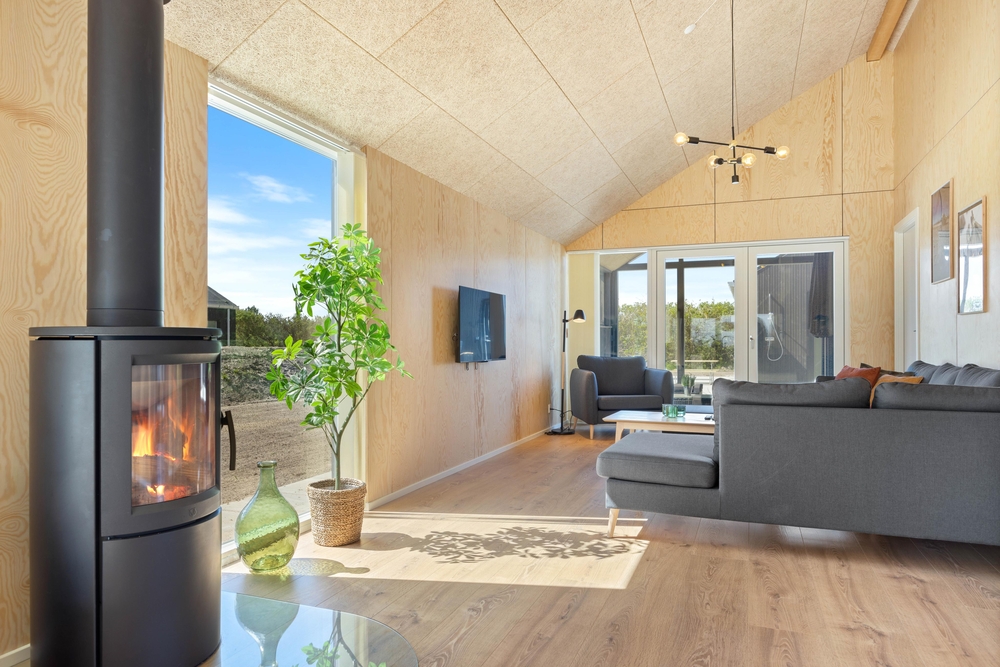 In diesem modernen Ferienhaus in Søndervig werdet ihr euch sofort wie zu Hause fühlen. Das 2023 erbaute Ferienhaus verfügt über eine stilvolle und komfortable Einrichtung, die durch das wunderbare Licht perfekt ergänzt wird. Das große Wohnzimmer ist euer Treffpunkt, wo ihr euch gemeinsam zu gemütlichen Momenten zum Kochen, Spielen und Filmen schauen versammeln könnt. Der im Wohnbereich vorhandene Kamin sorgt sowohl für eine tolle Urlaubsatmosphäre als auch für kuschelige Temperaturen. Darüber hinaus steht eine Wärmepumpe bereit, welche effizient für angenehme Temperaturen sorgt.