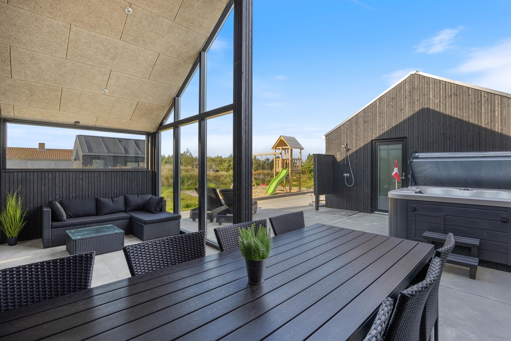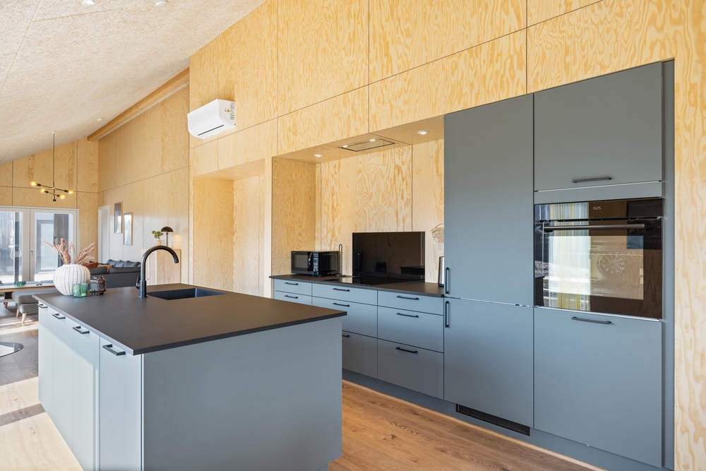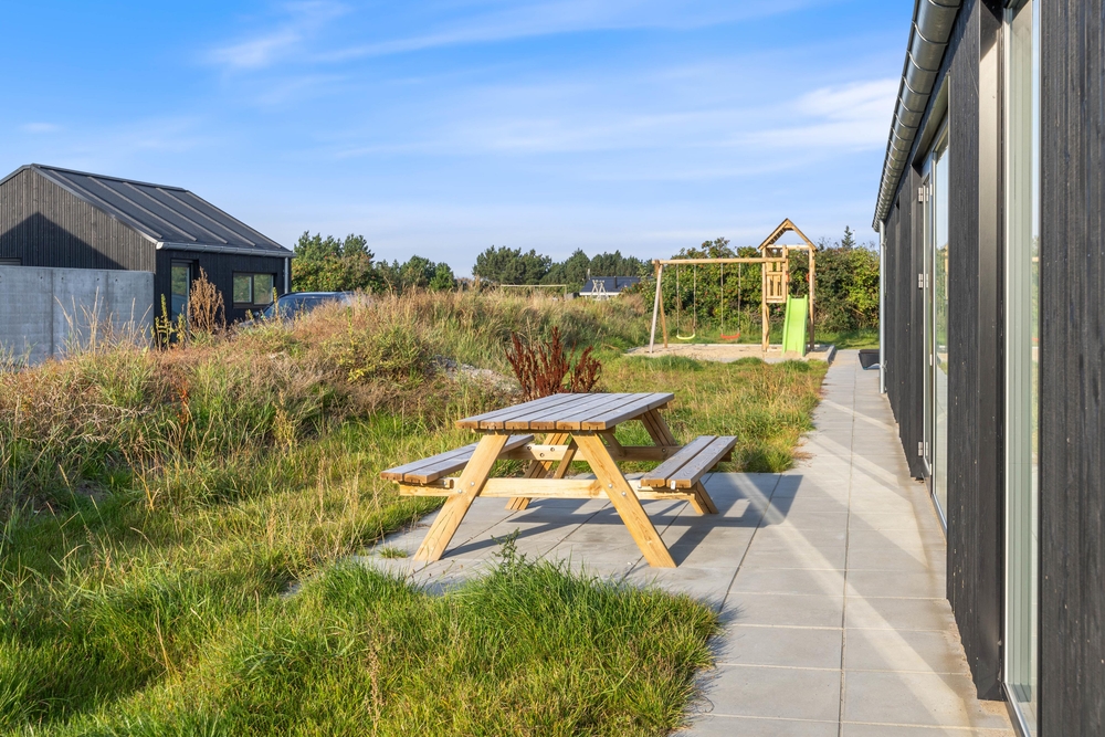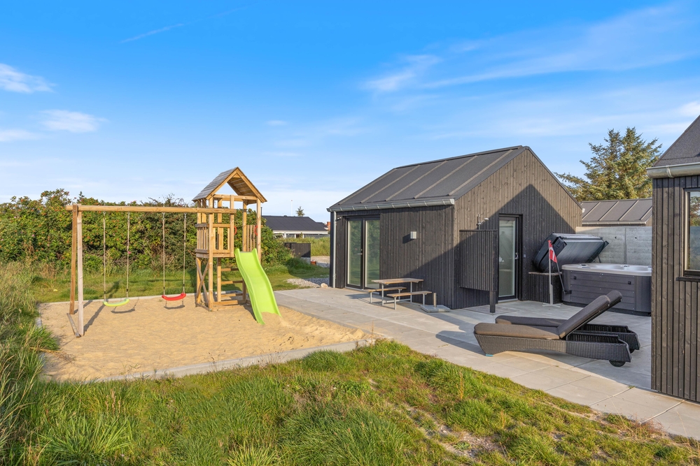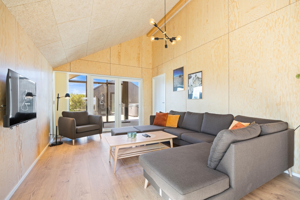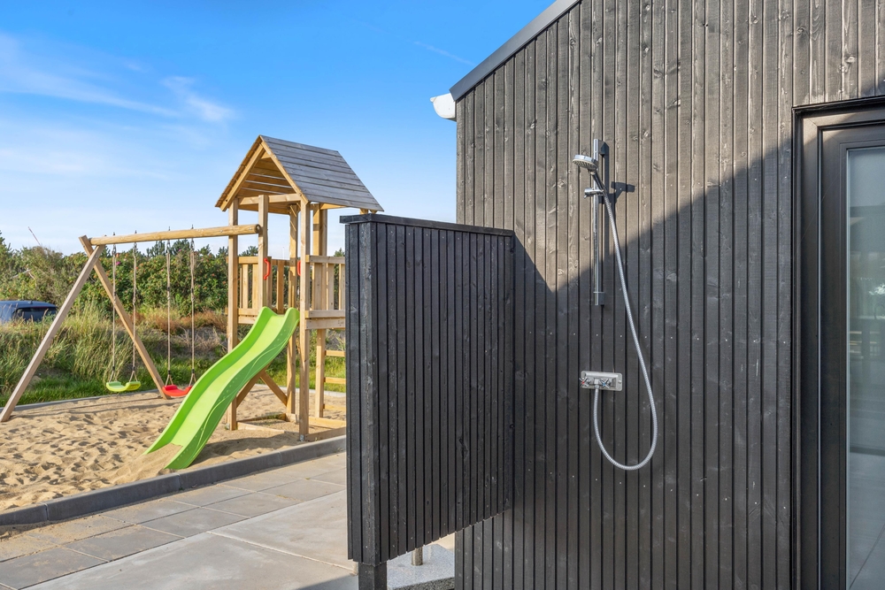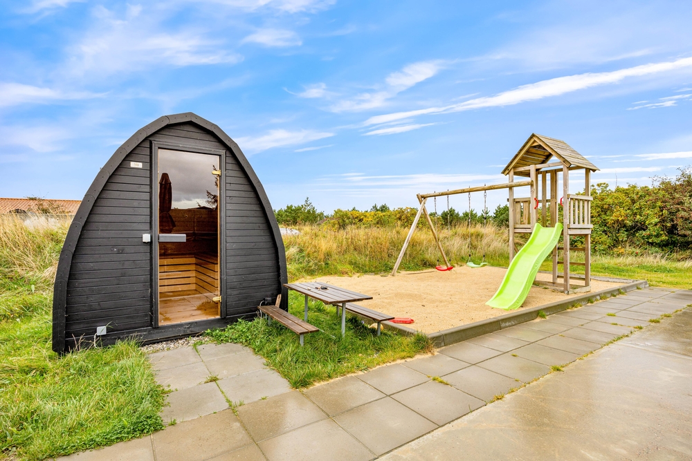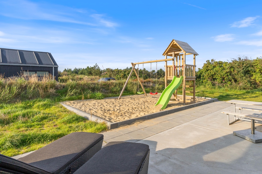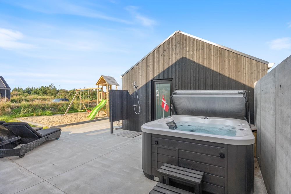 In diesem modernen Ferienhaus in Søndervig werdet ihr euch sofort wie zu Hause fühlen. Das 2023 erbaute Ferienhaus verfügt über eine stilvolle und komfortable Einrichtung, die durch das wunderbare Licht perfekt ergänzt wird. Das große Wohnzimmer ist euer Treffpunkt, wo ihr euch gemeinsam zu gemütlichen Momenten zum Kochen, Spielen und Filmen schauen versammeln könnt. Der im Wohnbereich vorhandene Kamin sorgt sowohl für eine tolle Urlaubsatmosphäre als auch für kuschelige Temperaturen. Darüber hinaus steht eine Wärmepumpe bereit, welche effizient für angenehme Temperaturen sorgt.