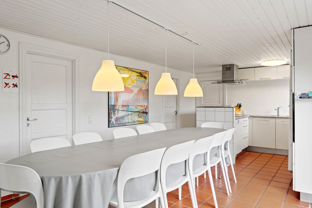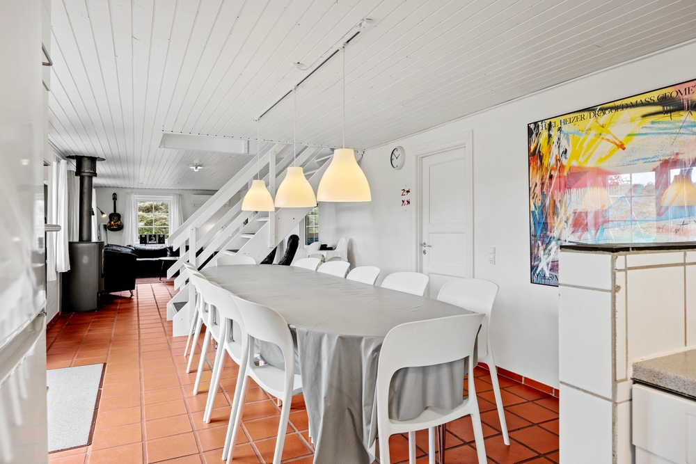 Der Holzofen sorgt für ?Hygge? und Gemütlichkeit. Für die kalten Tage steht euch eine energiesparende Wärmepumpe zur Verfügung.Die Aufteilung des Ferienhauses ist funktional und gut durchdacht. Es gibt insgesamt 7 Schlafzimmer, alle mit Doppelbetten ausgestattet, die verteilt werden können. Hier wird jeder für sich das ideale Zimmer finden.Auf jedem Stockwerk gibt es ein Badezimmer mit Dusche und natürlich Fußbodenheizung.