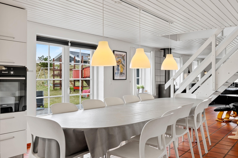 Der Mittelpunkt in diesem Ferienhaus wird sicherlich entweder der gemütliche und helle Wohnbereich sein, in dem sich Wohnzimmer, Küche und Esszimmer in einem Raum befinden, oder aber auch der Poolbereich. Das zweistöckige Ferienhaus hat alles, was für einen perfekten Urlaub benötigt wird. Hier könnt ihr viele gemeinsame Stunden verbringen, egal ob vor dem Fernseher oder ihr trefft euch am großen Esstisch für Gesellschaftsspiele.