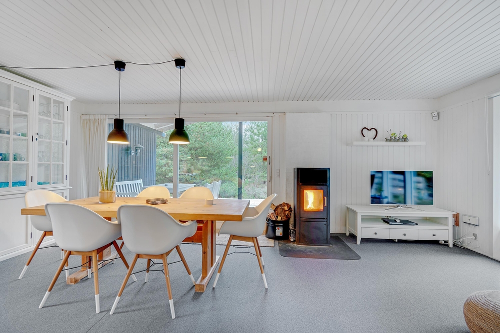 Die helle offene Küche ist mit allem ausgestattet was Ihr zum Zubereiten leckerer Ferienmahlzeiten benötigt. Während die Spülmaschine den Abwasch erledigt, bleibt Euch viel Zeit für gemeinsame Unternehmungen mit der Familie. An kühleren Tagen verbreitet der knisternde Kaminofen eine wohlige Wärme. In diesem kinderfreundlichen Haus könnt Ihr herrliche unvergessliche Familienferien verbringen.