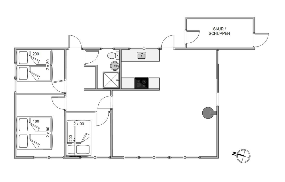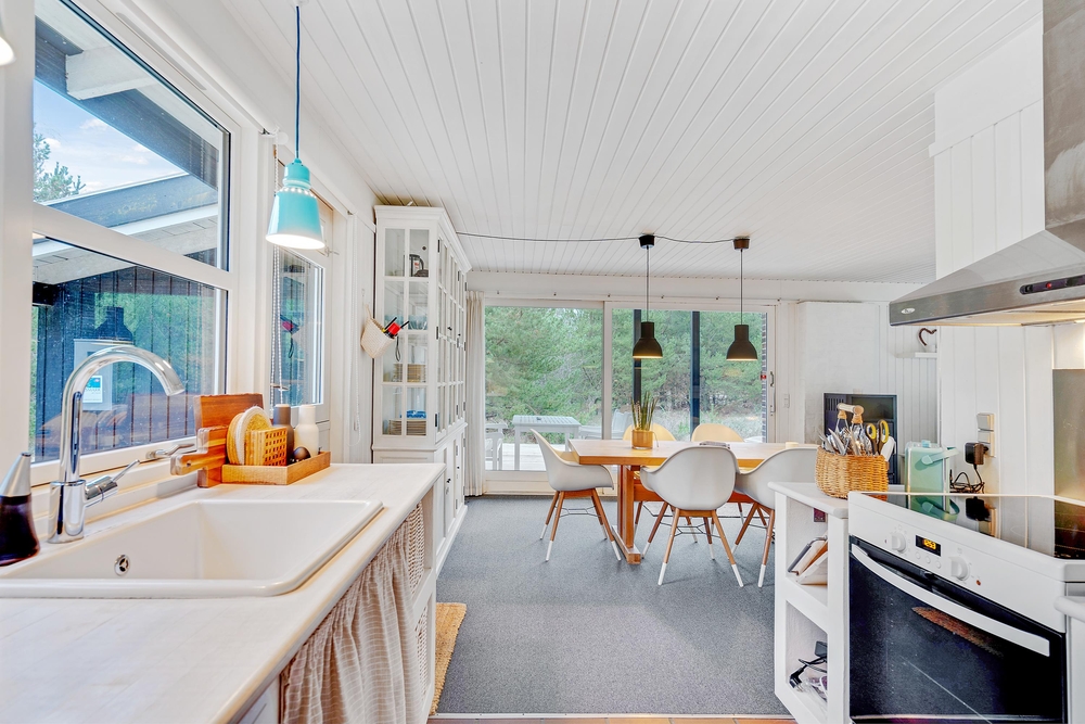 Auf einem schönen Naturgrundstück am Ende einer Sackgasse, liegt dieses hell und freundlich eingerichtete Ferienhaus mit Platz für bis zu 6 Personen. Das Haus ist geschmackvoll eingerichtet. Im Peder Larsensvej 9 gibt es 3 Schlafzimmer, d mit Doppelbetten und 1 mit Etagenbetten. Da das Haus mit einer energiesparenden Wärmepumpe und Fussbodenheizung in Küche und Bad ausgestattet ist, eignet es sich auch für Ferien im Winter.