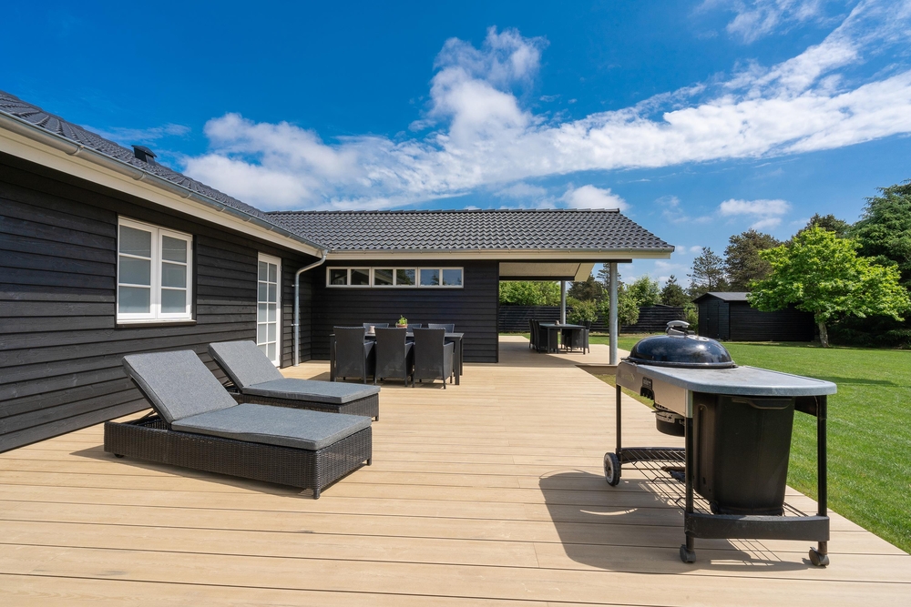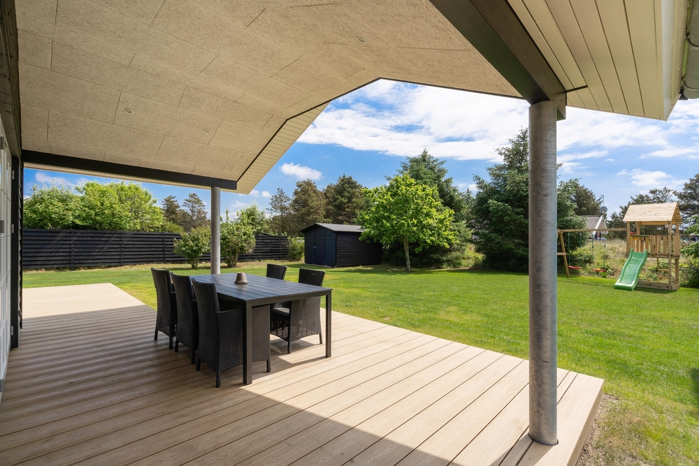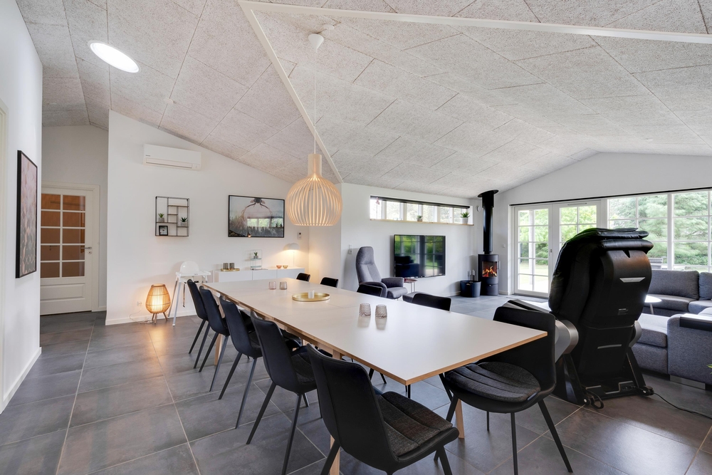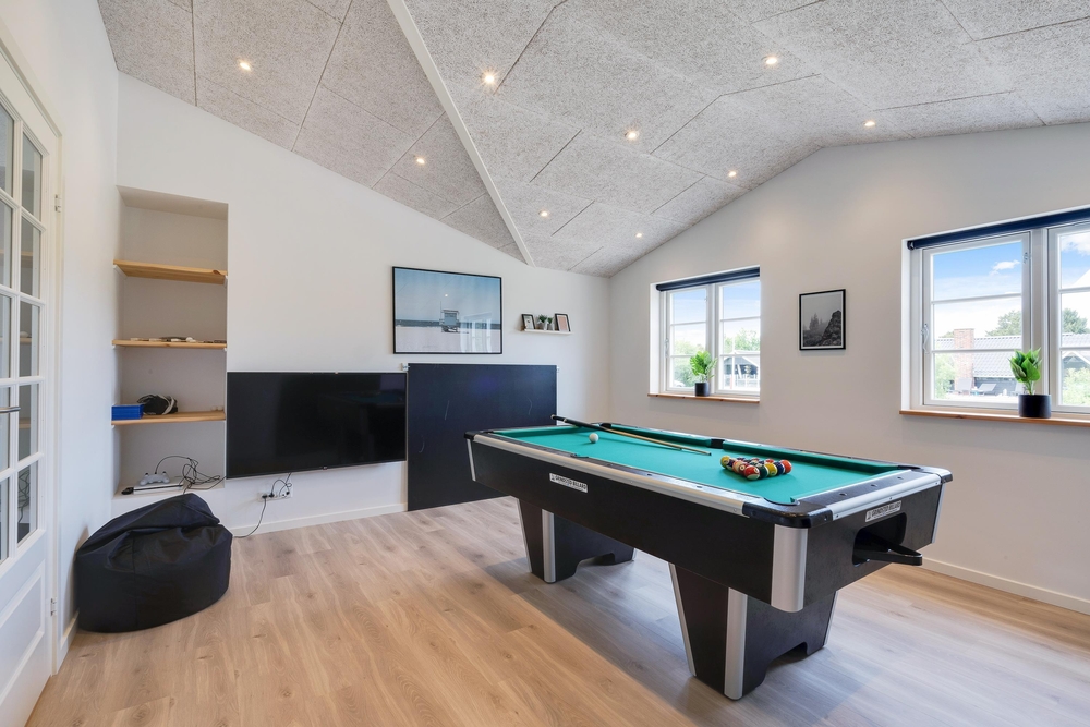 Im beschaulichen Vejers, etwas abseits vom Zentrum und dennoch nur 700 m von den hohen Dünen und dem dahinterliegendem herrlichem Sandstrand, liegt auf einem ruhigen Stichweg dieses moderne und in 2021 fertiggestellte Ferienhaus. Insgesamt stehen euch 190 m² und somit ausreichend Platz für bis zu 10 Personen sowie eure beiden Hunde bereit. Wellness und Action in Verbindung mit einem Urlaub am Meer ? was braucht es noch?