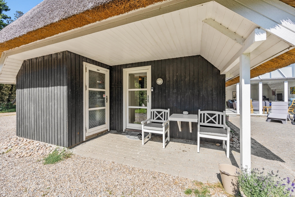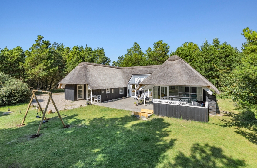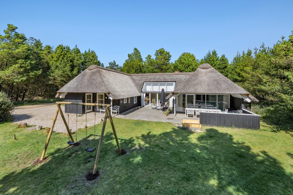 Ganz versteckt in einem kleinen Kiefernwäldchen, steht dieses gemütliche Reetdach Ferienhaus. Hier seid ihr ganz ungestört für euch, und könnt einen erholsamen Dänemark Urlaub verbringen, in dem es euch an nichts fehlt. Ein Pool mit Sauna und Whirlpool, und die typisch, dänische gemütliche Atmosphäre sorgen für gute Urlaubsstimmung ? und der geliebte Familienhund ist hier auch Willkommen.