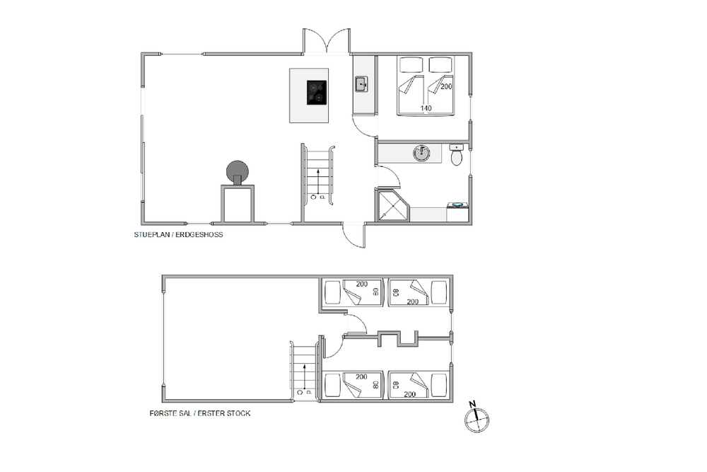 Im Erdgeschoss befindet sich das Elternschlafzimmer mit Doppelbett und in der 1. Etage gibt es die beiden Kinderzimmer mit jeweils 2 Einzelbetten. Eure Jüngsten haben also ihr eigenes Reich und können spielen oder ihre Lieblingsserie im Wohnzimmer, welches ebenfalls in der 1. Etage untergebracht ist, sehen.
