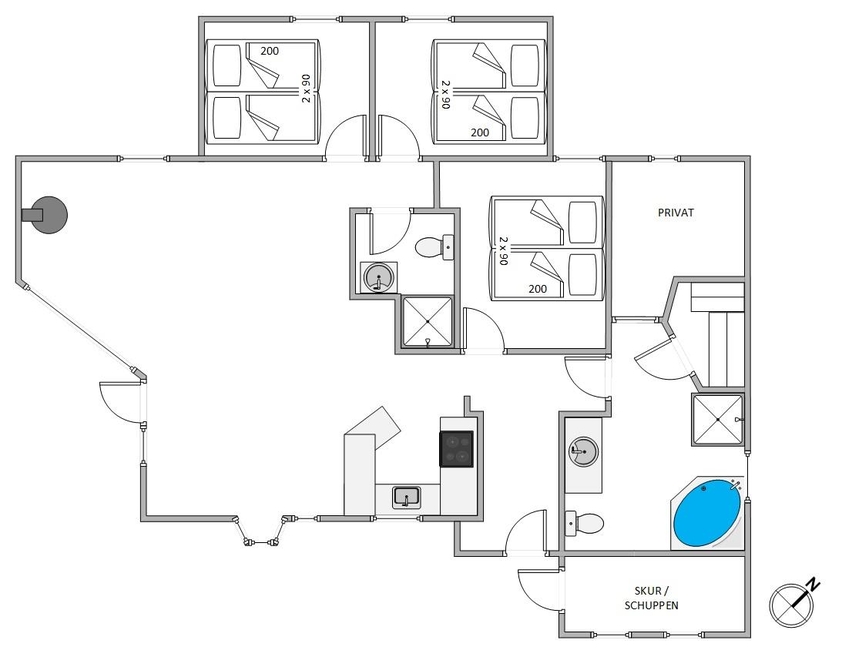 Vier Schlafzimmer, jeweils mit einem Doppelbett ausgestattet, stehen für erholsame Urlaubsnächte bereit. Besonders gut lässt es sich des Nachts ruhen, wenn ihr euch vorher ein bisschen Wellness gönnt und in der Sauna oder dem Whirlpool tiefenentspannt.