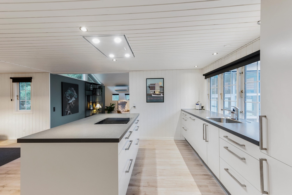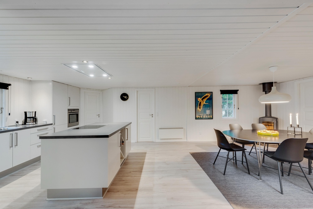 Die offene Küche mit dem gegenüberliegenden Esstisch lädt zu lustigen Koch- und Spieleabenden mit der ganzen Familie oder allen Freunden ein. Ob ihr nun eure Lieblingsgerichte zubereitet oder doch lieber neue (vielleicht dänische) Rezepte ausprobieren wollt, ist euch überlassen.