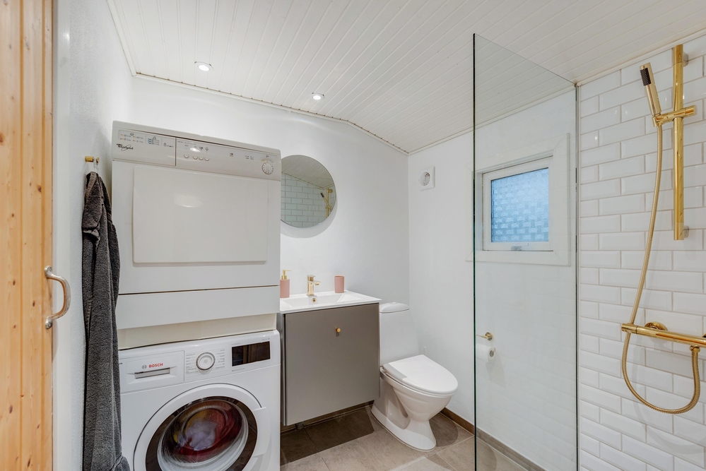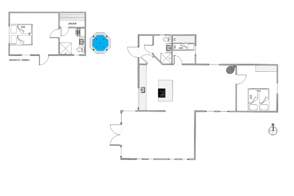 Du möchtest deine Privatsphäre im Urlaub genießen? Kein Problem, denn es gibt ein Schlafzimmer mit einem Badezimmer und der heiß begehrten Sauna, das als kleines Extra-Gebäude neben dem Ferienhaus liegt. Die zwei restlichen Schlafzimmer und das andere Badezimmer findest du im Haupthaus. Beide Badezimmer sind mit einer Fußbodenheizung ausgestattet.