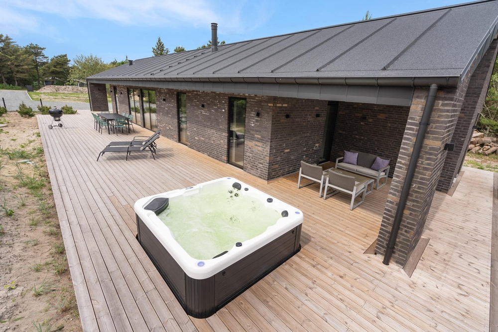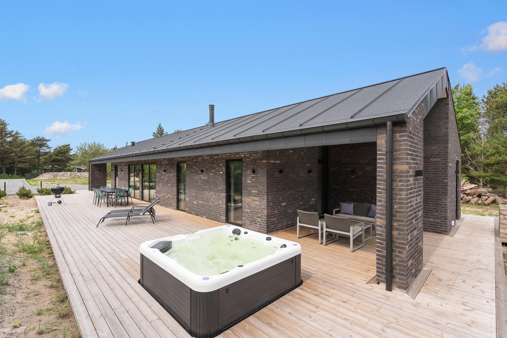 Nicht weit vom Zentrum Blåvands, auf Peter Malersvej 20 erwartet euch dieses in 2019 neu gebaute Luxusferienhaus mit Platz für sogar 2 Familien ? insgesamt bis zu 8 Personen. Euch erwartet eine komfortable und moderne Ausstattung sowie das absolute Highlight in Form von einem Außenwhirlpool! Für die Kinder gibt es Platz zum Toben und Herumtollen sowie Spielgeräte in Form von Schaukeln und Sandkasten.